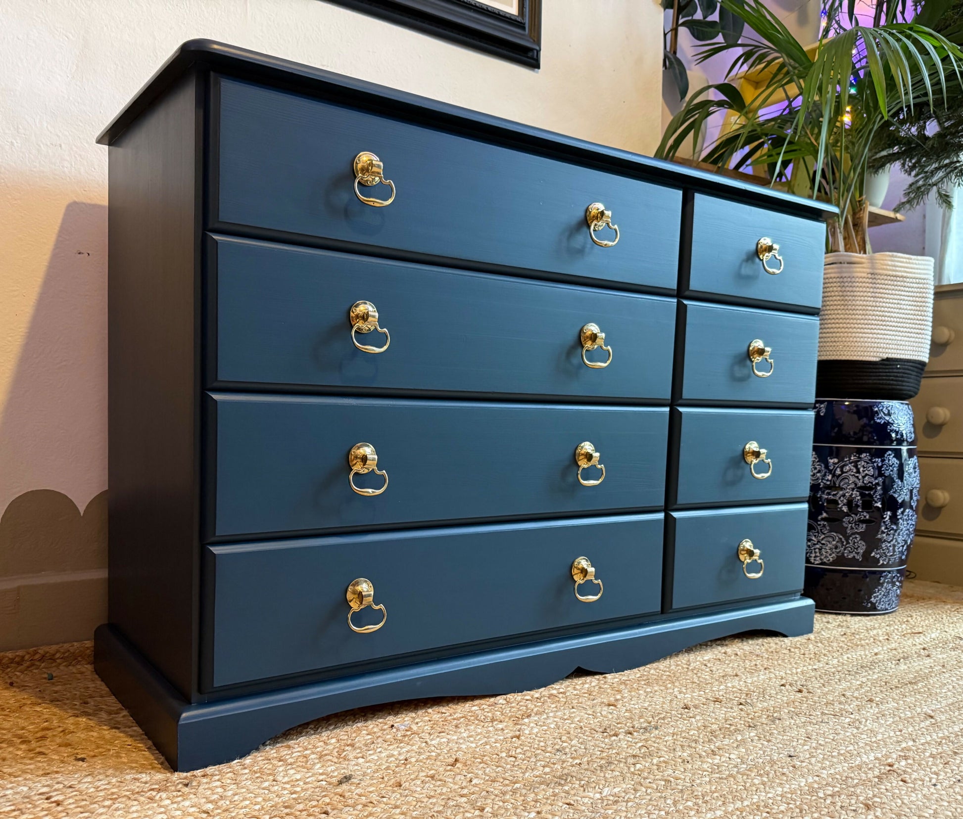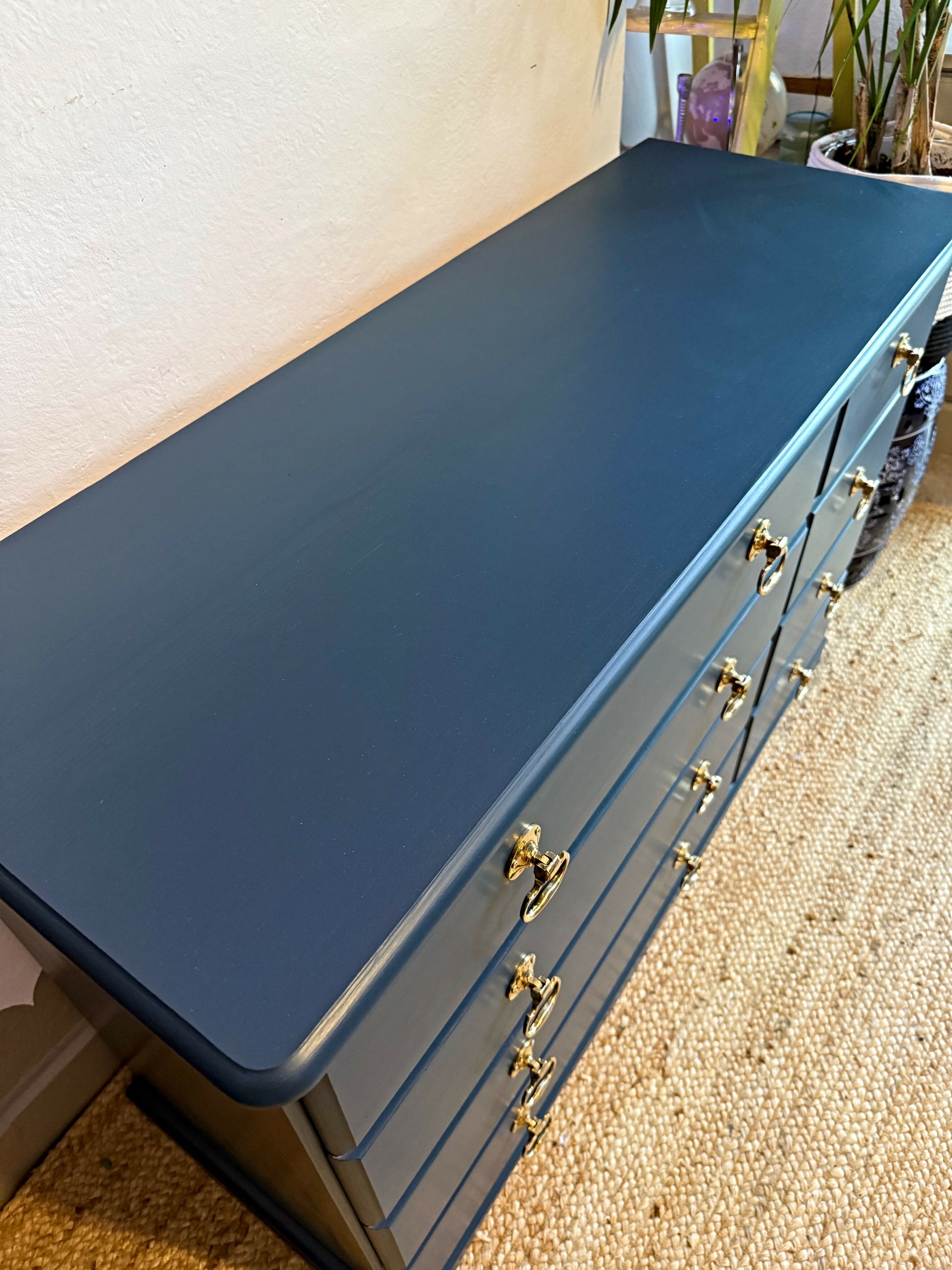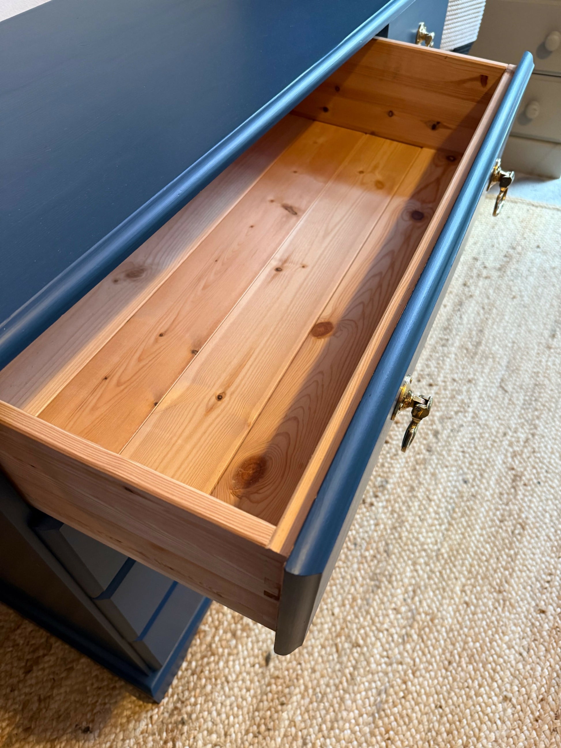 Newly refurbished solid wood chest of drawers blue bank of drawers dovetail joints
