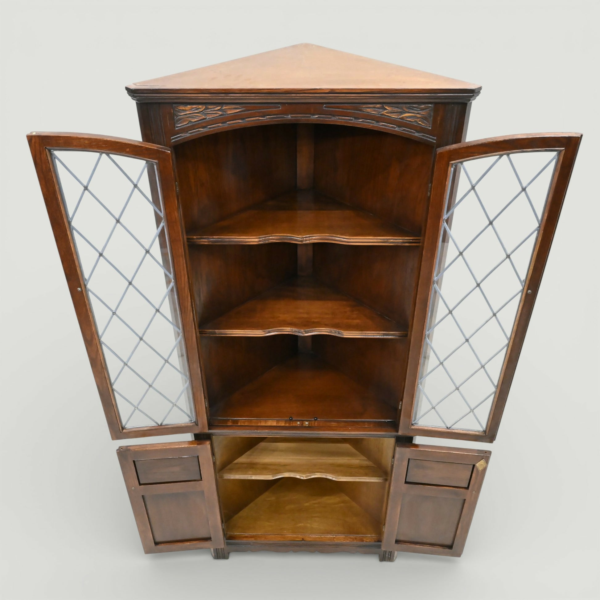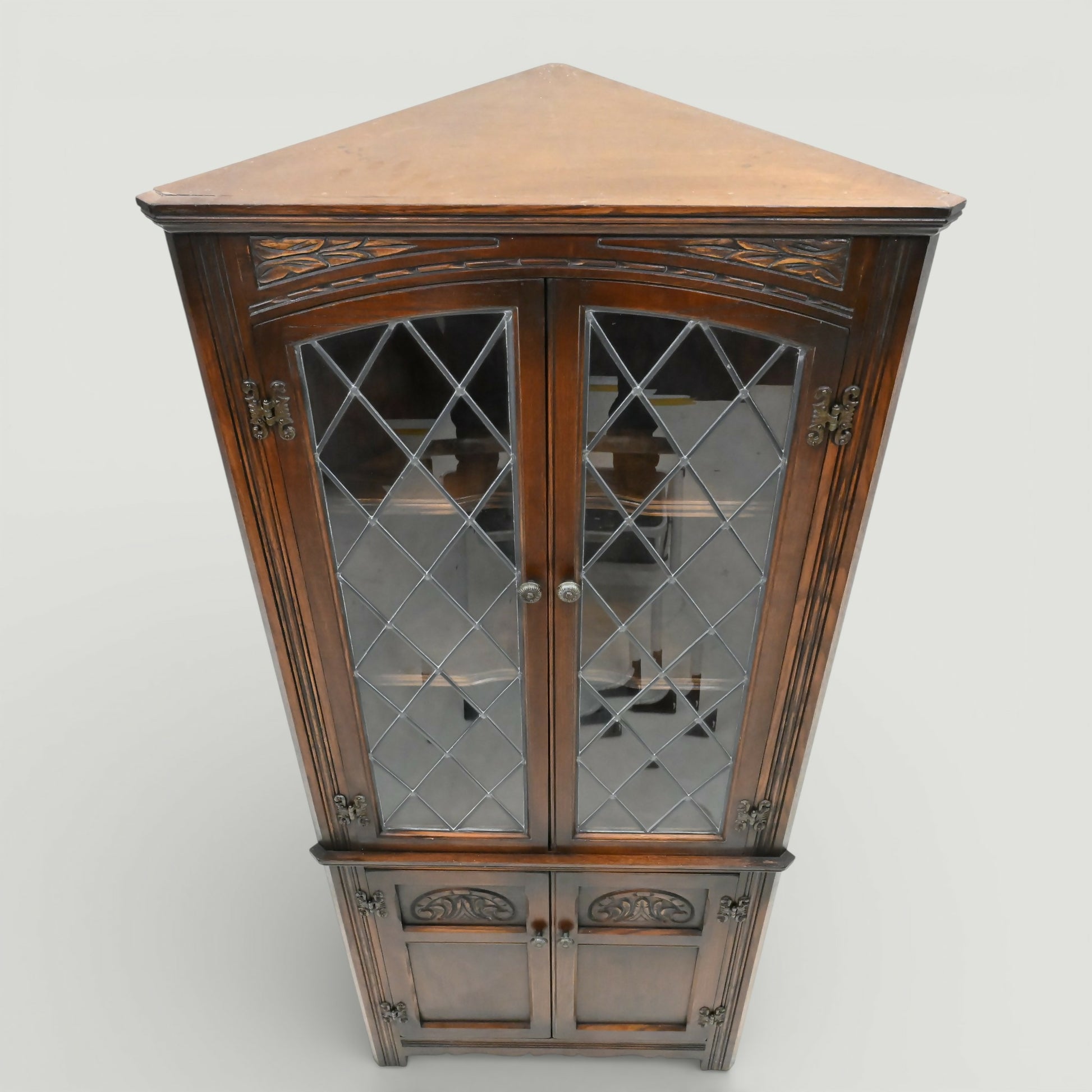 Old Charm Corner Display Cabinet with Leaded Glass Tudor Brown FREE UK Delivery*. SBR11068/2110E