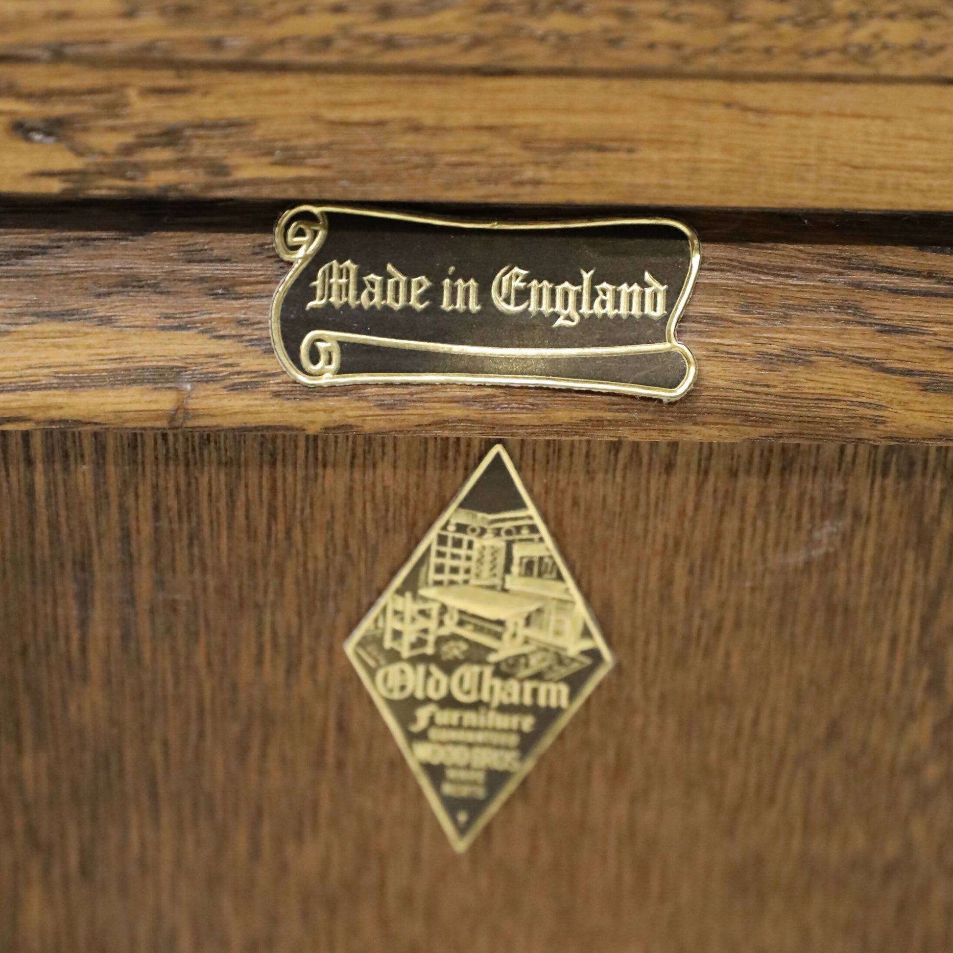 Old Charm Pedestal Cabinet Cupboard Linenfold Doors Tudor Brown FREE DELIVERY. SBR9087/0805D