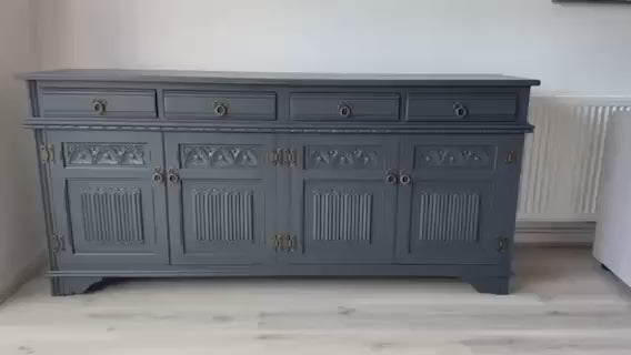 This sideboard comprises of 4 doors with shelf space inside and 4 large drawers above.