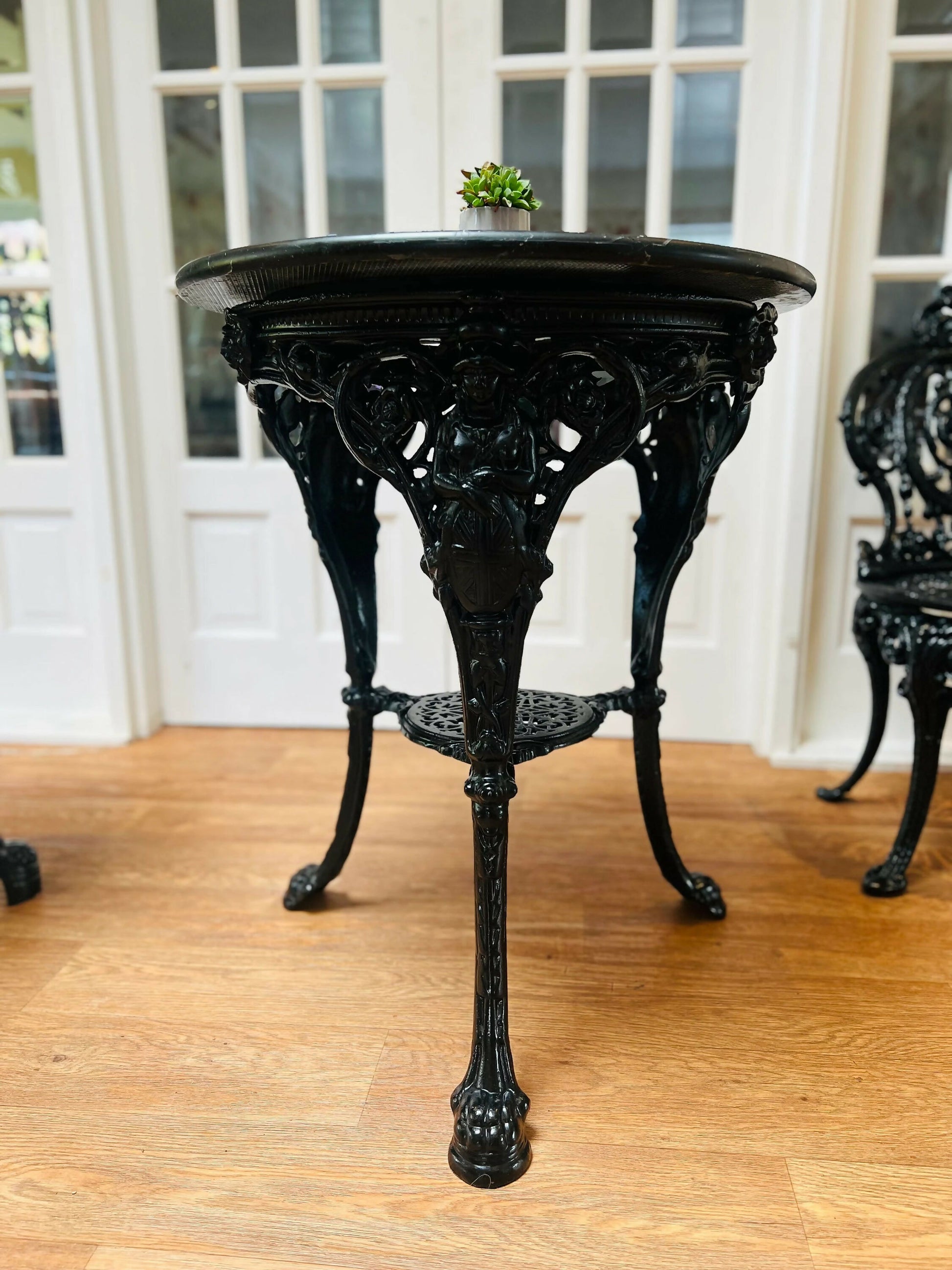 Pair of Cast Iron Tables with Granite Tops