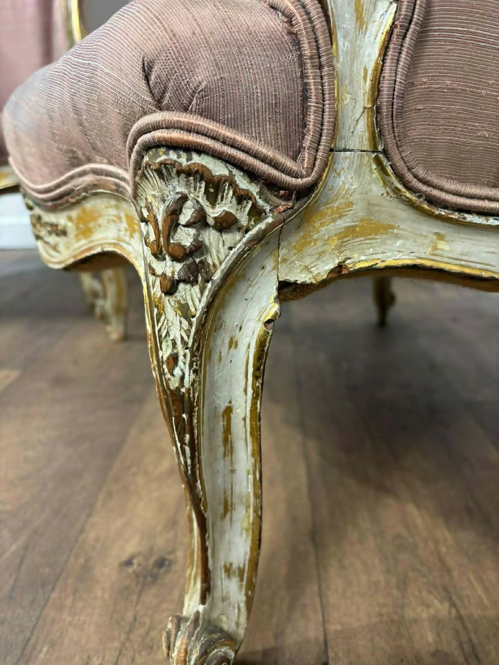 Dusky Pink Upholstery • Shabby Chic Gilt Finish • Elegant Silhouette