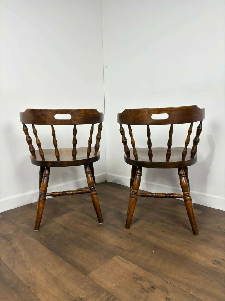 Pair of Oak Tub Style Spindle Back Chairs