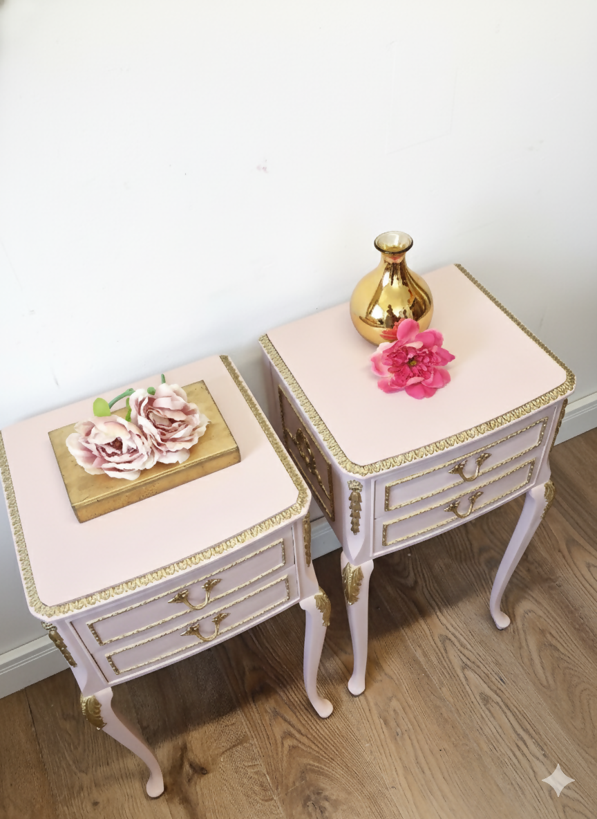 Pink french Louis bedside cabinets