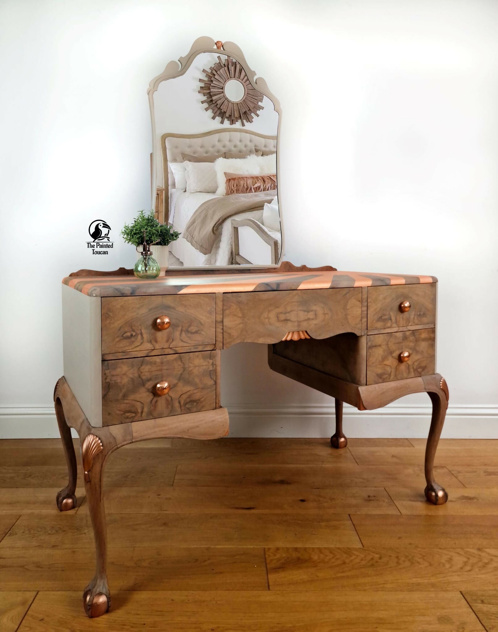 Queen Anne Style Dressing Table with copper starburst and mirror