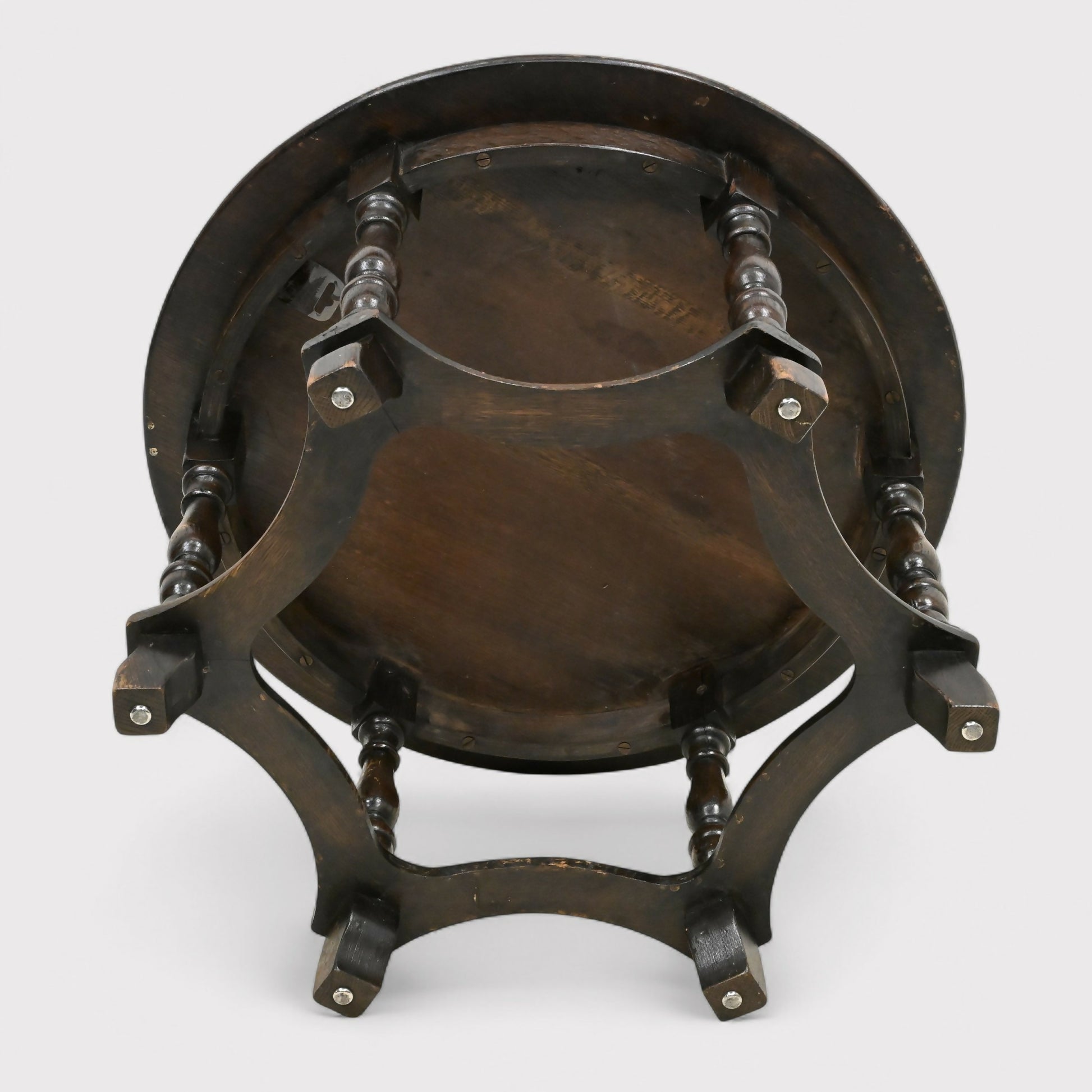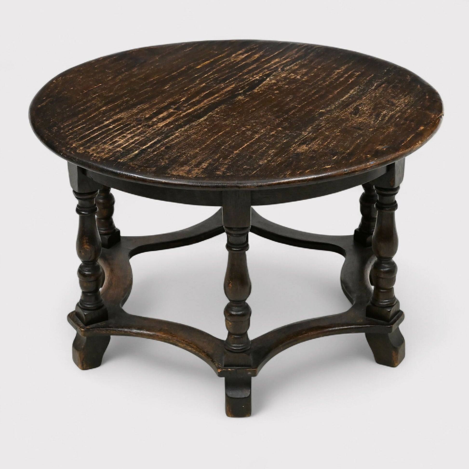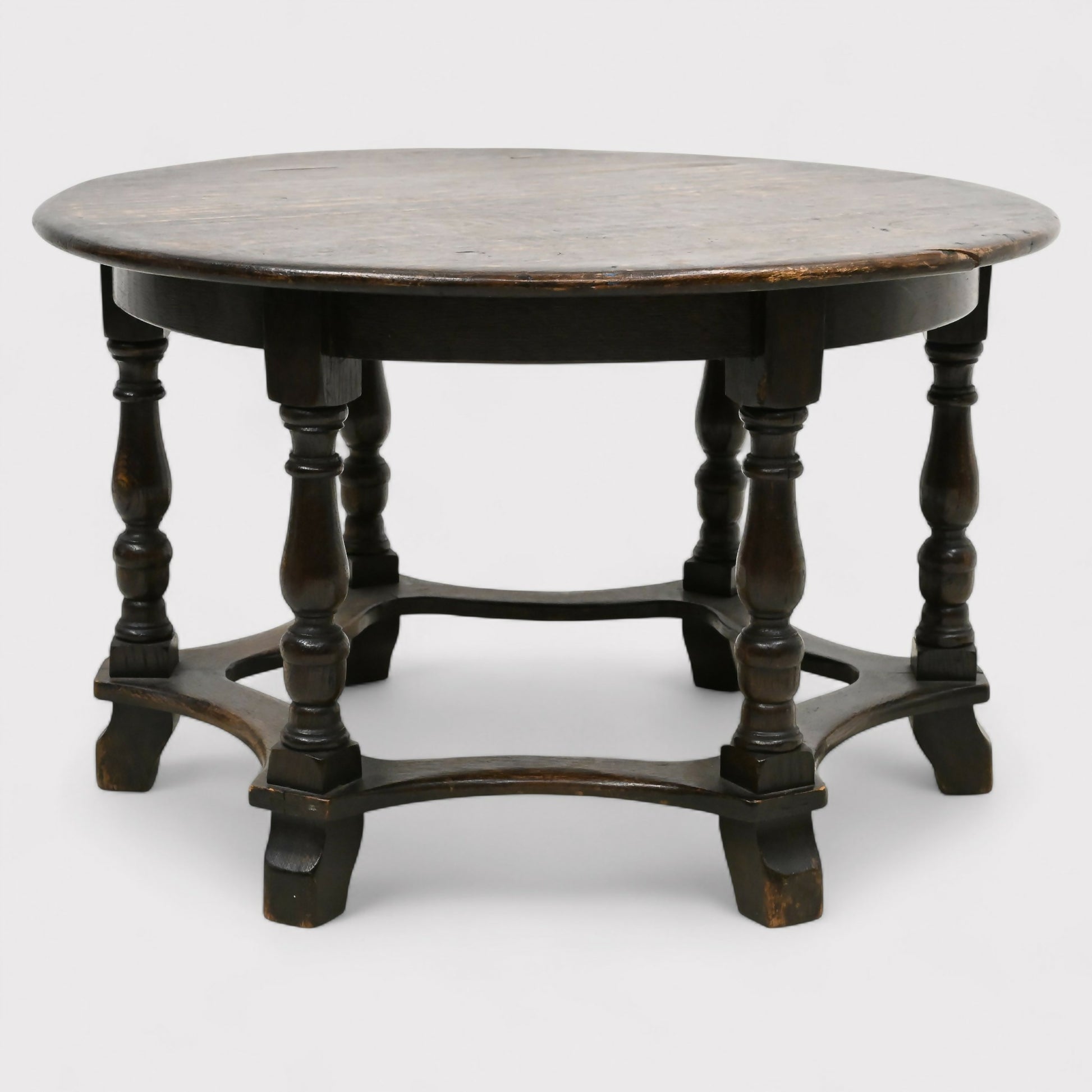 celebrated for its robust construction, dark oak patina, and turned legs
