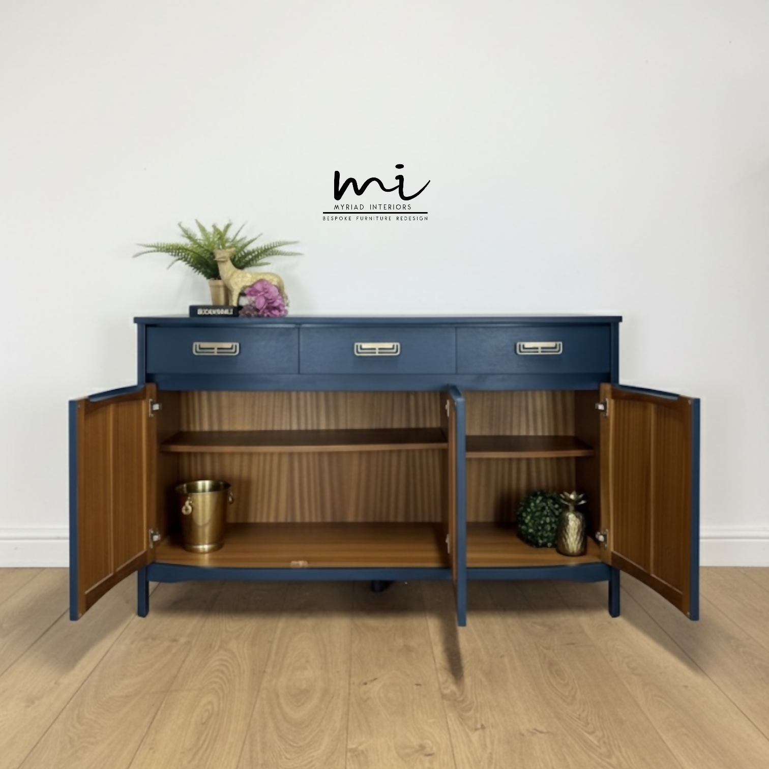 Refinished navy blue Nathan sideboard, mid century modern, tv stand, media unit, teak, drinks cabinet