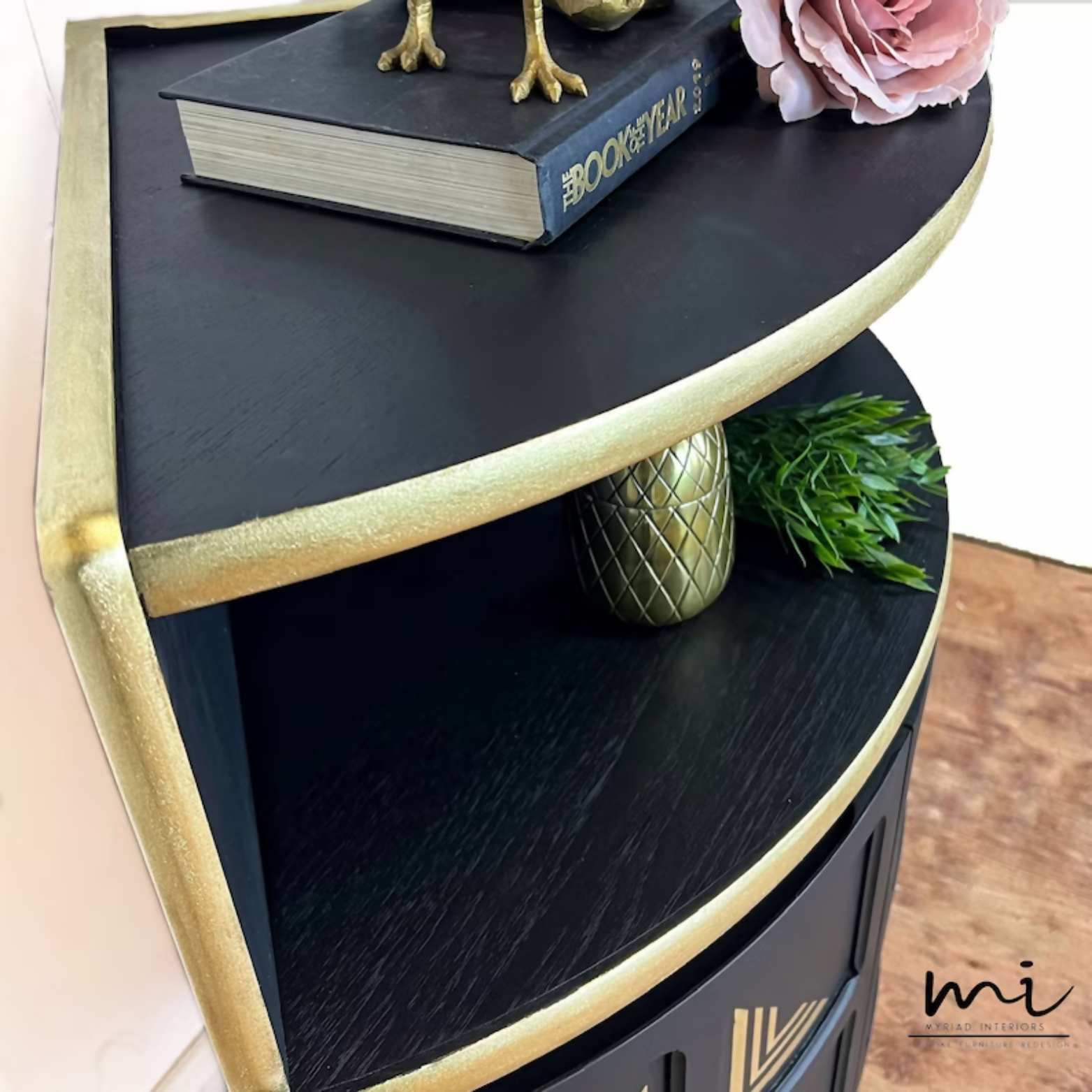 Given an art deco inspired makeover, black creates the main back drop with a beautiful gold design added to its inlaid squares.