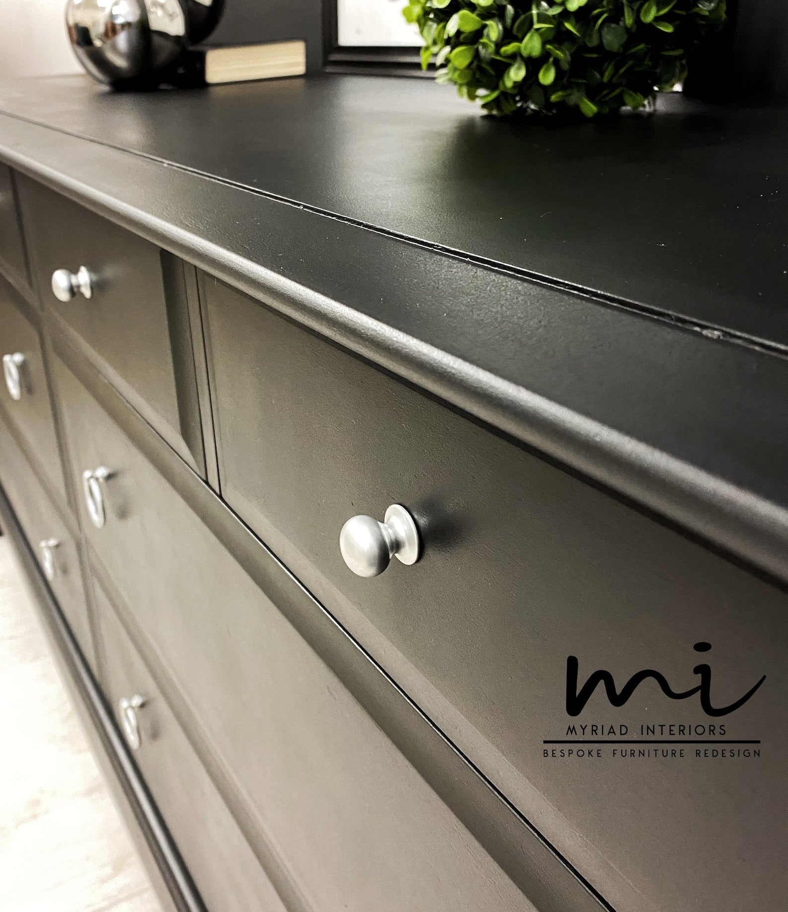 Refurbished vintage Stag Minstrel captains chest of drawers, black, dresser, extended large sideboard mid century