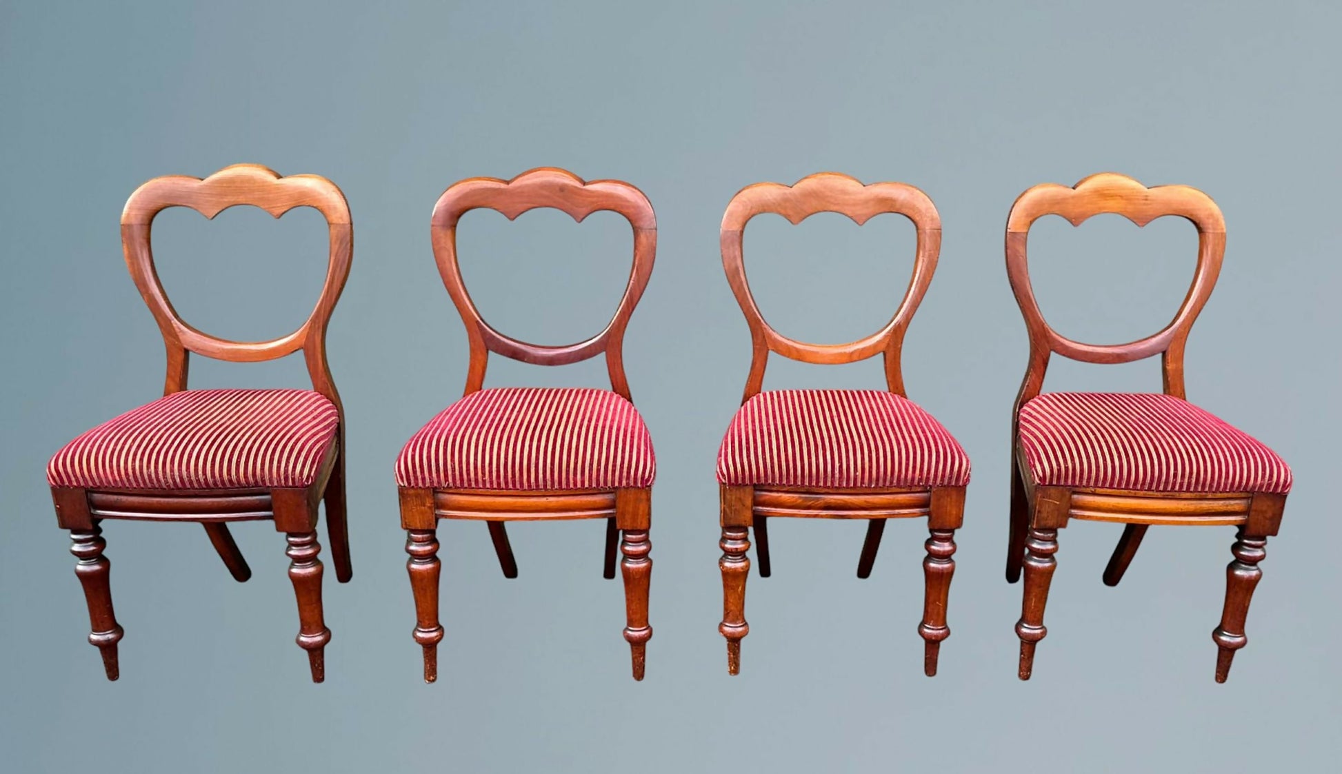 Set of Four Antique Victorian Mahogany Balloon Back Dining Chairs