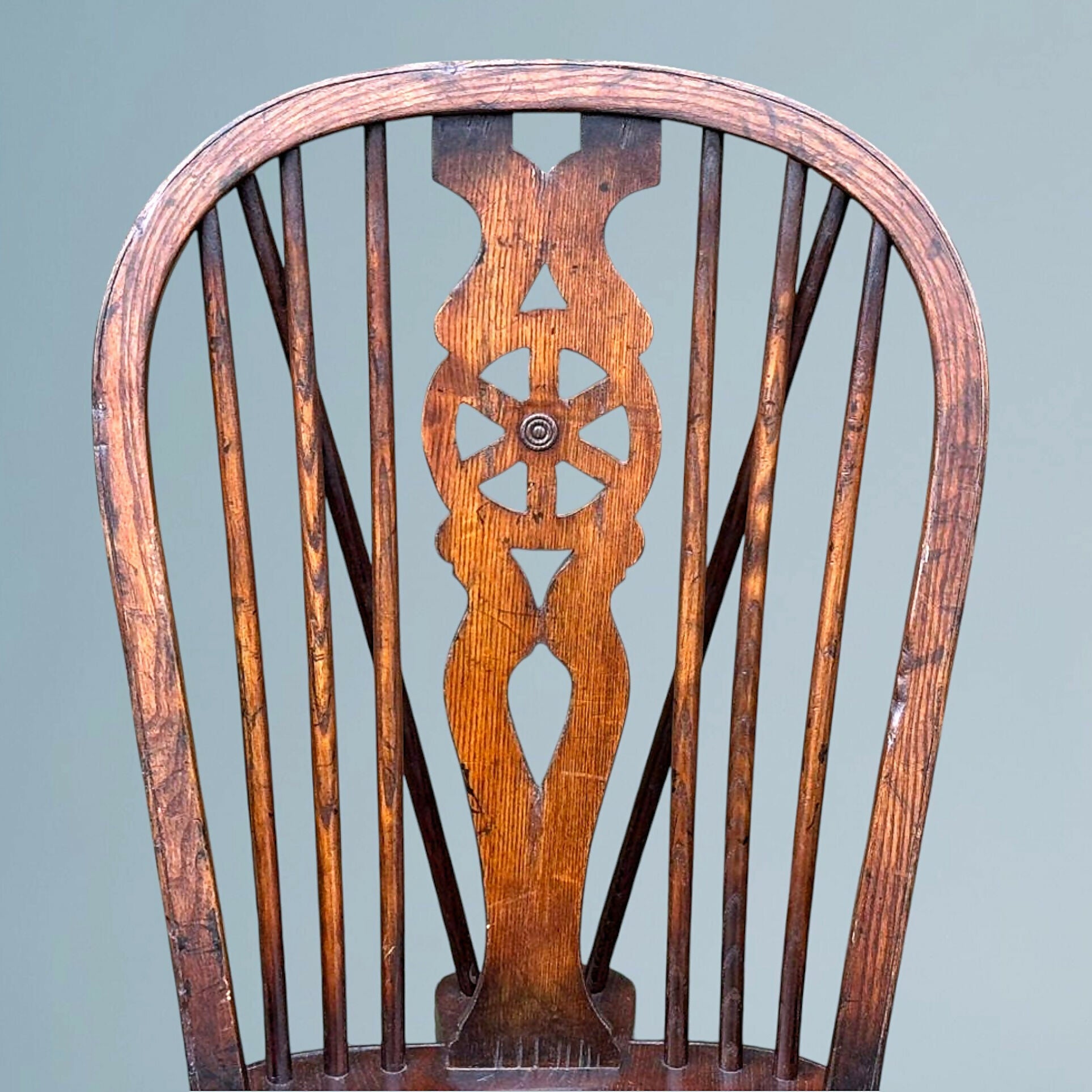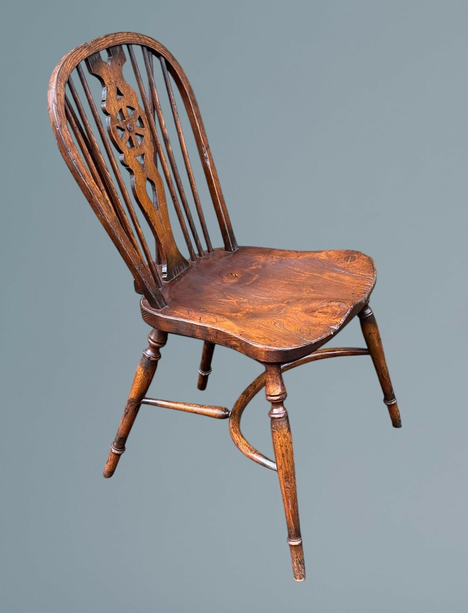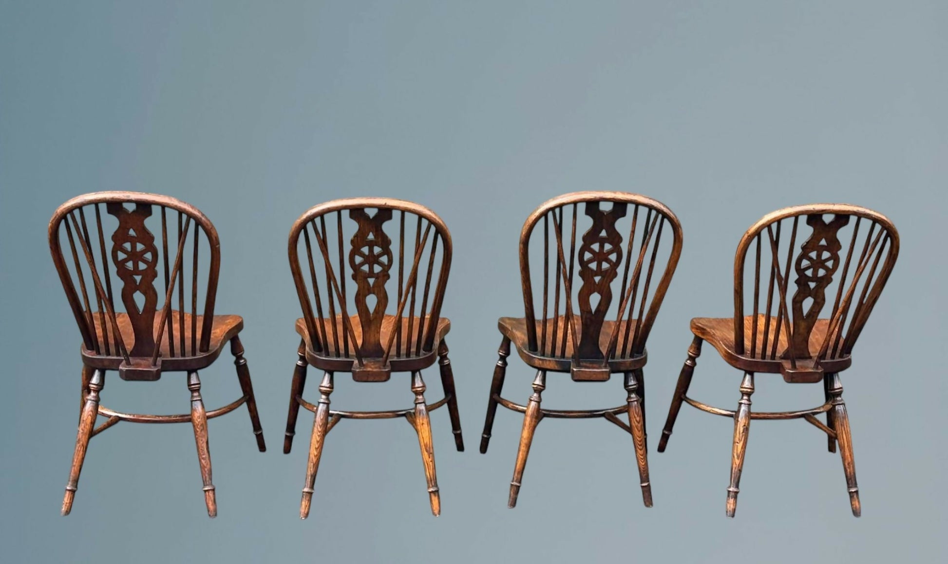 Set of Four Elm Windsor Wheel Back Chairs