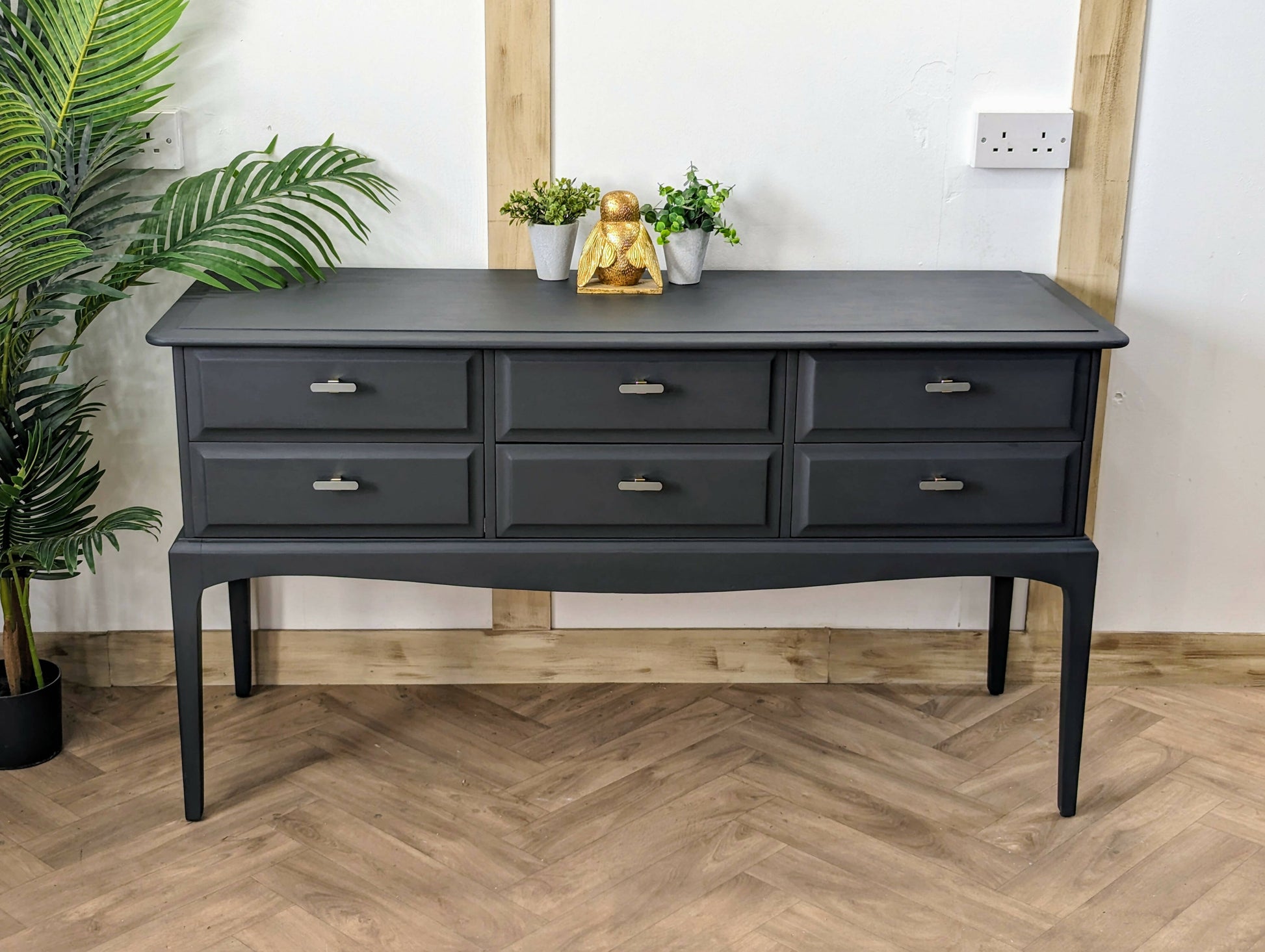 Stag minstrel black grey sideboard, spray painted retro console table, wood 6 drawers chest of drawers, dressing table