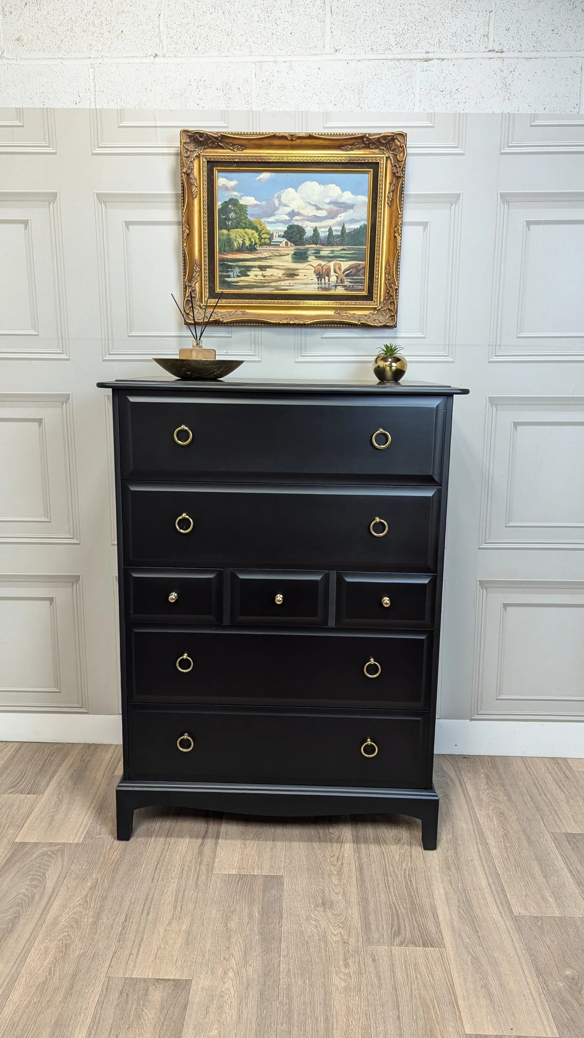 Stag minstrel black tallboy 7 drawer chest of drawers, professionally sprayed black