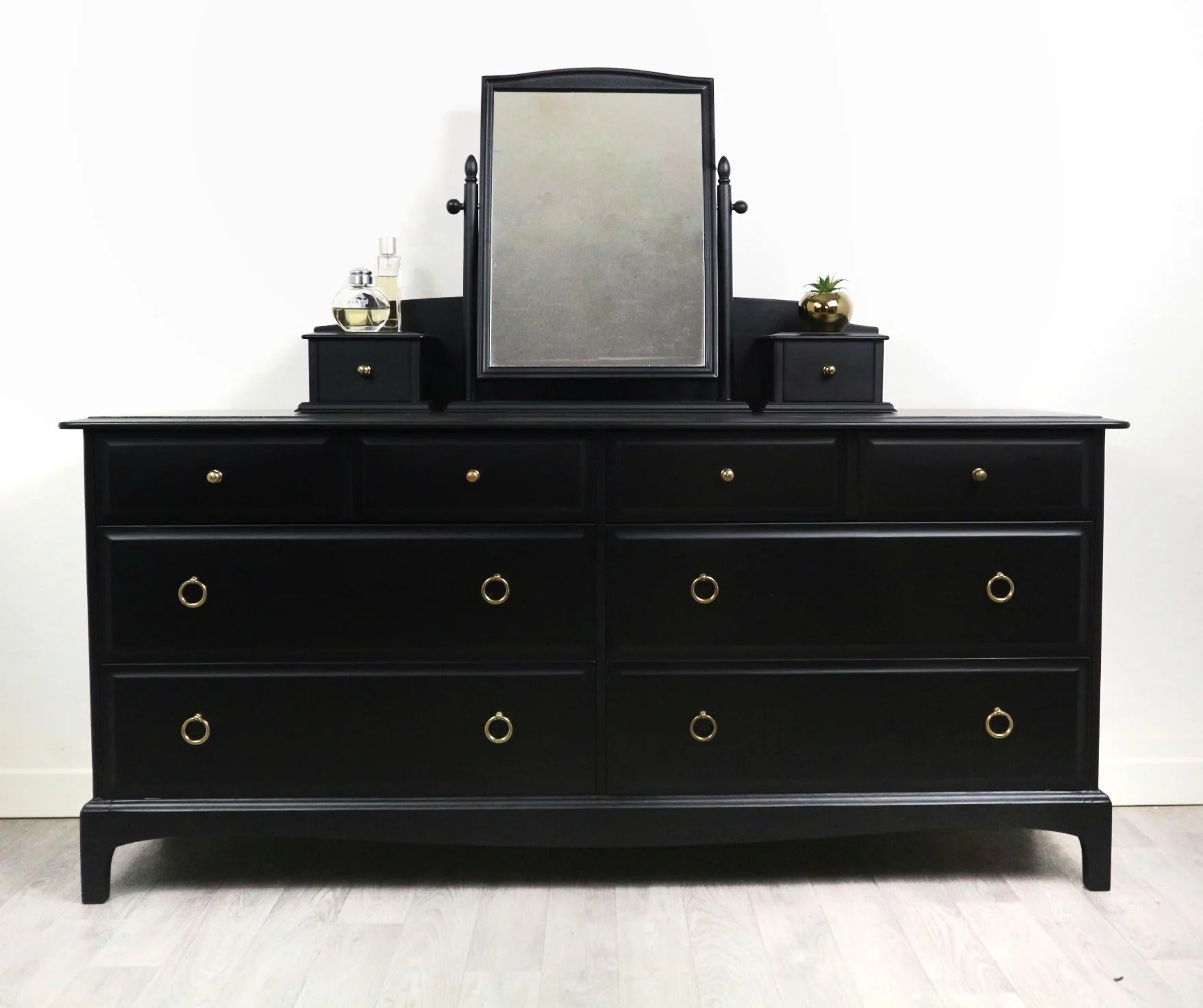 Stag Minstrel Captains Chest Matt Black, 8 Drawer Chest , Chest of Drawers with Mirror