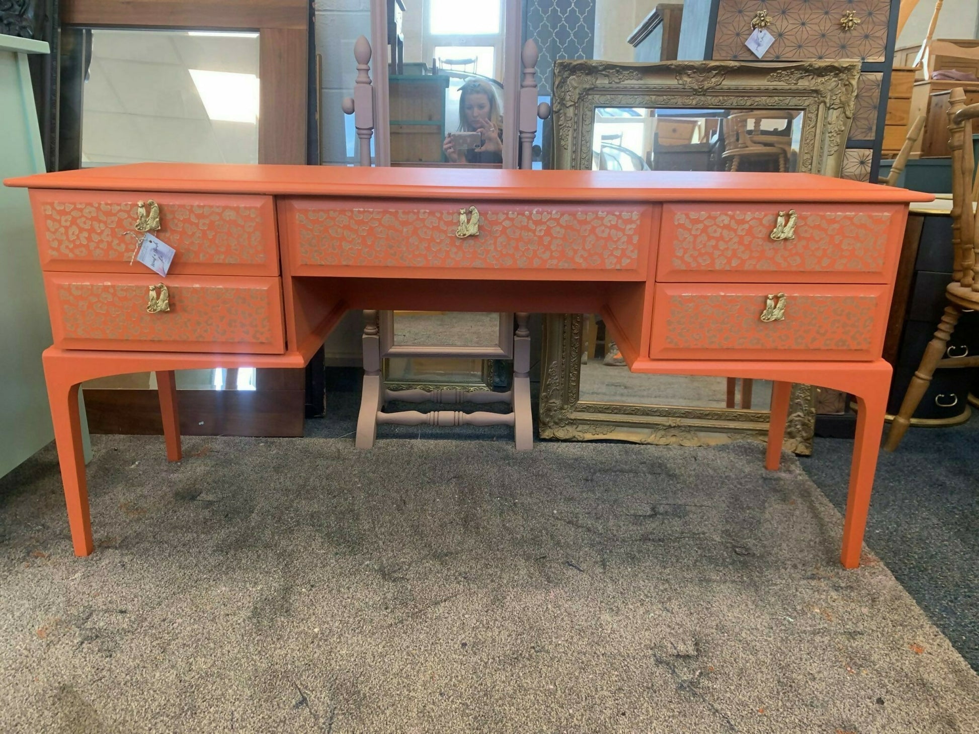 Stag Minstrel Dressing Table Mid Century Vintage Painted Bespoke Moroccan Geometric Bee Elephant Handles Stencilled