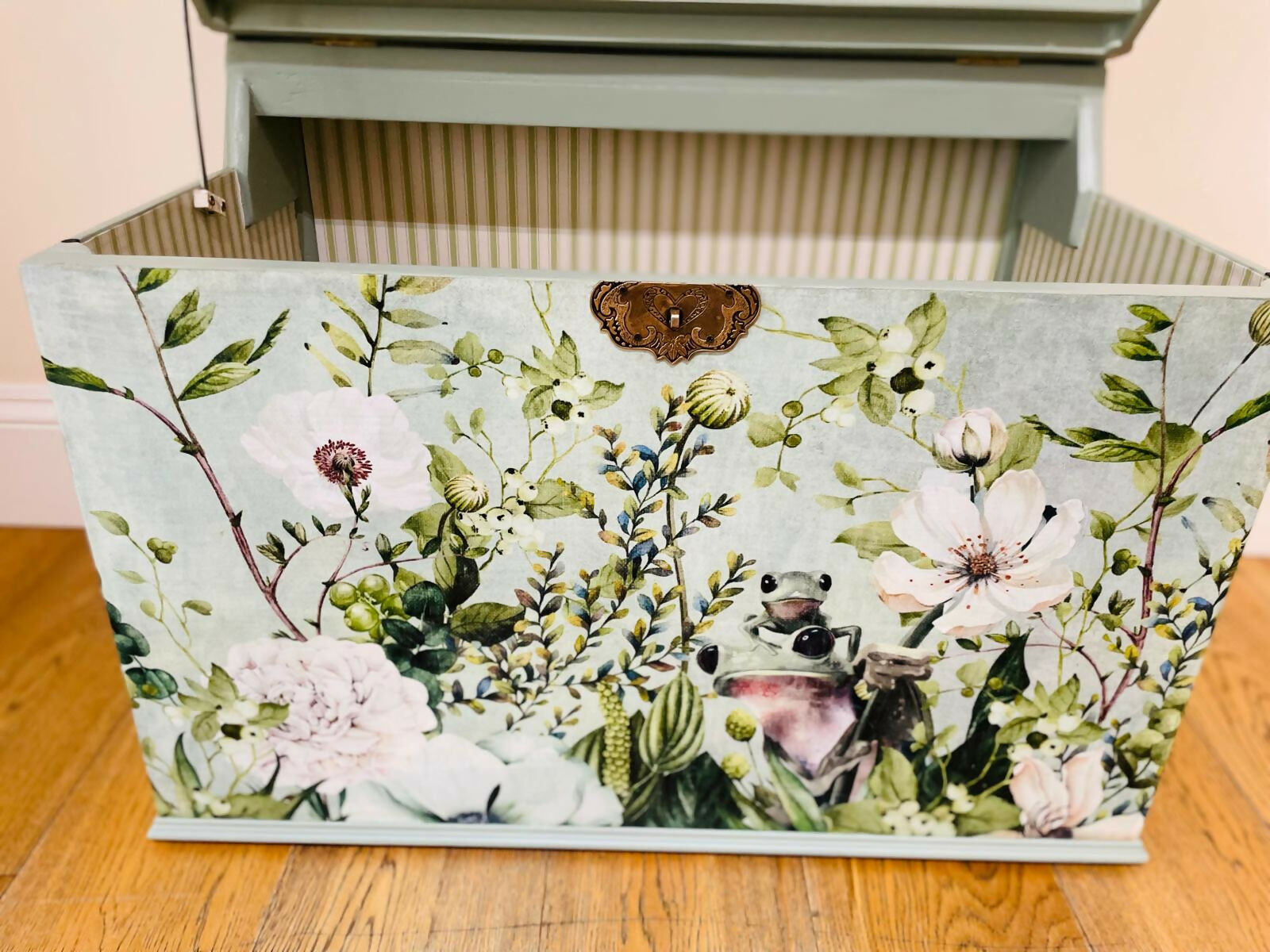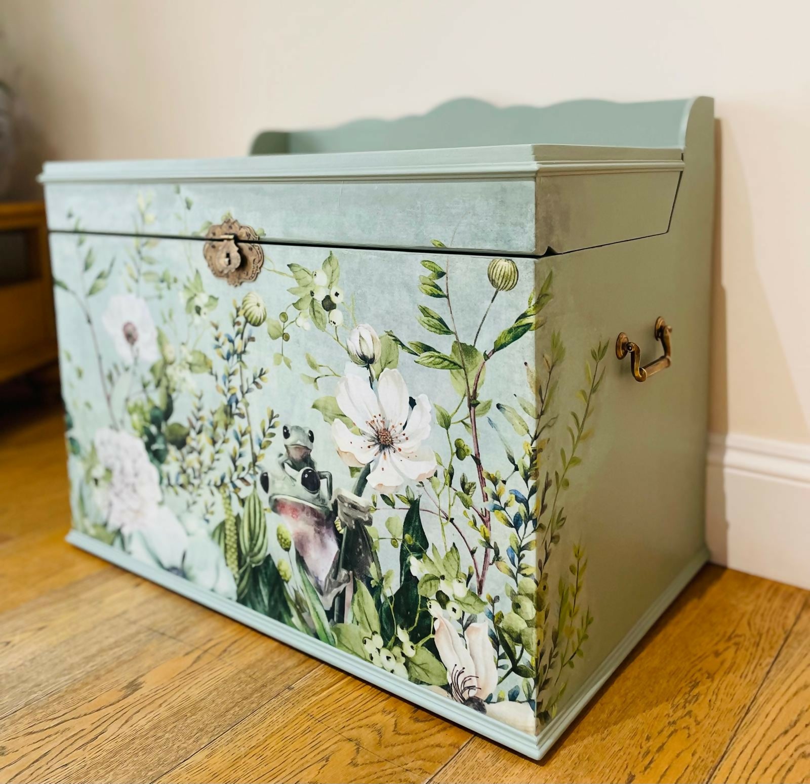 Storage Chest Upcycled Furniture Green Frog Foliage Vintage Storage Box Ottoman