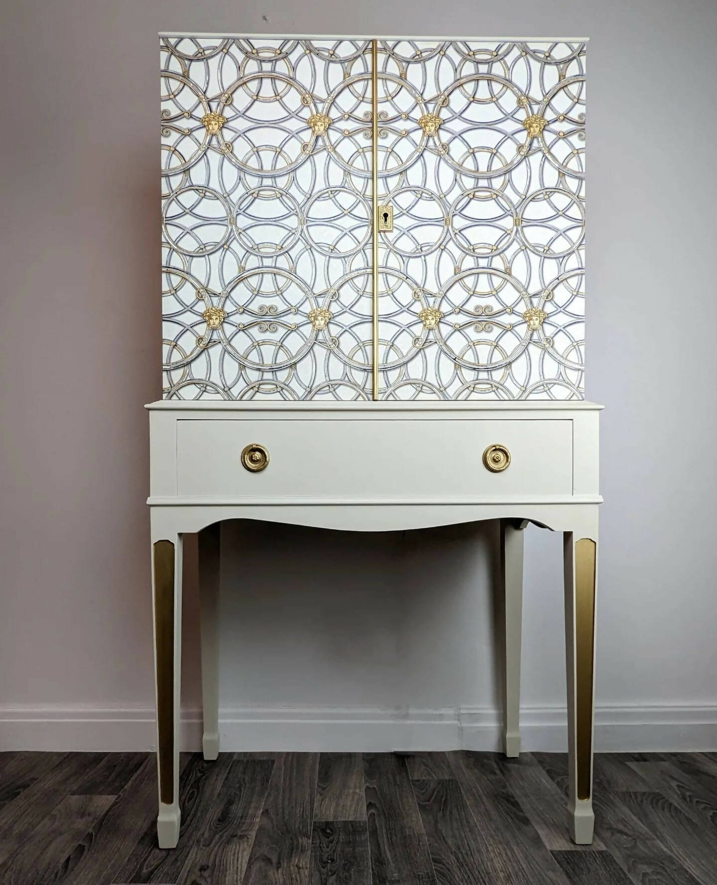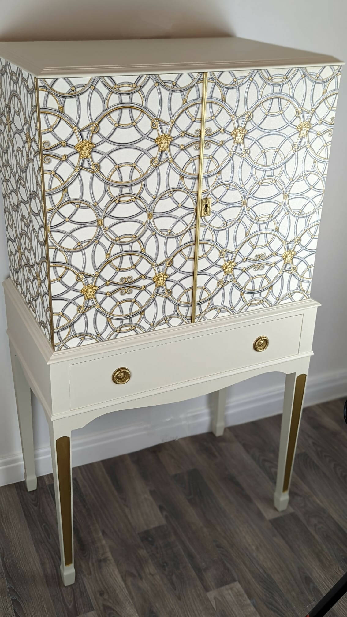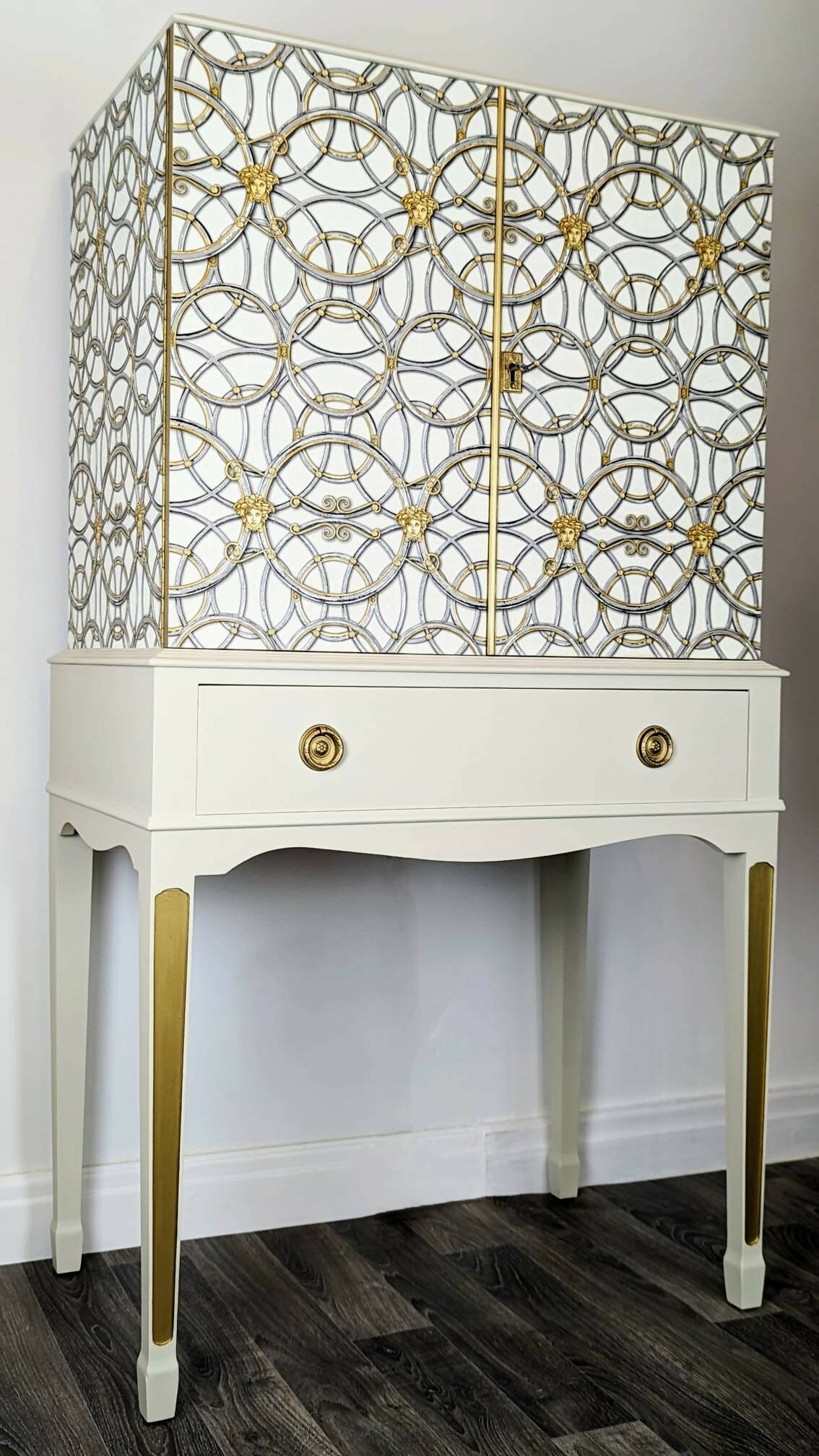 Tall Drinks Cabinet, Neutral, Vintage, Gold, Versace, Upcycled