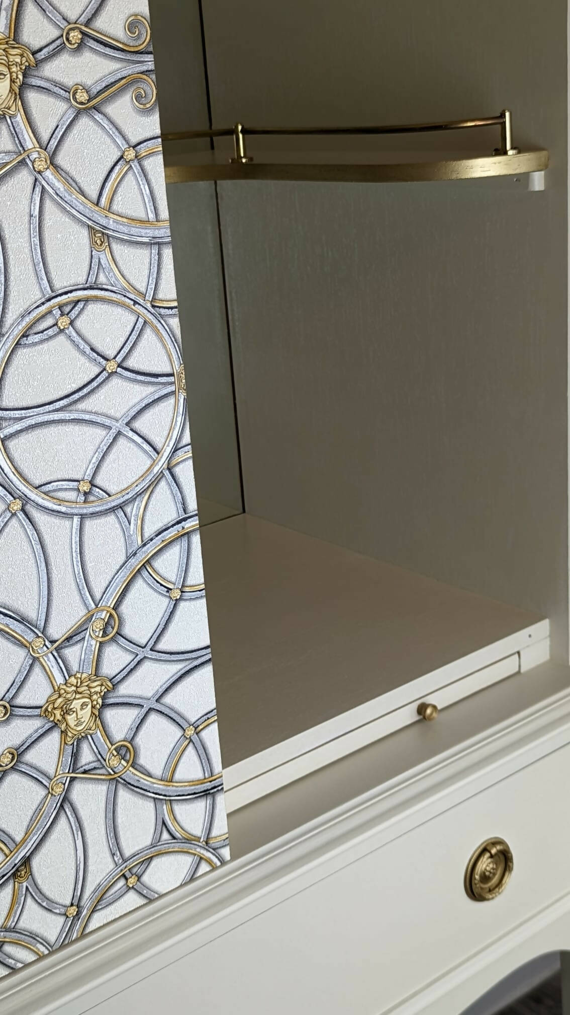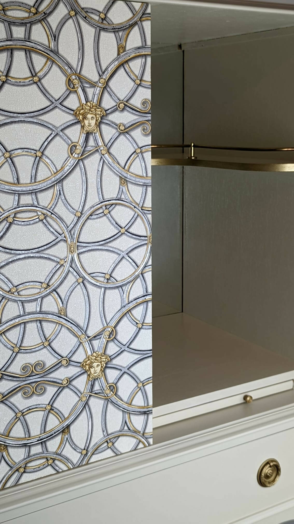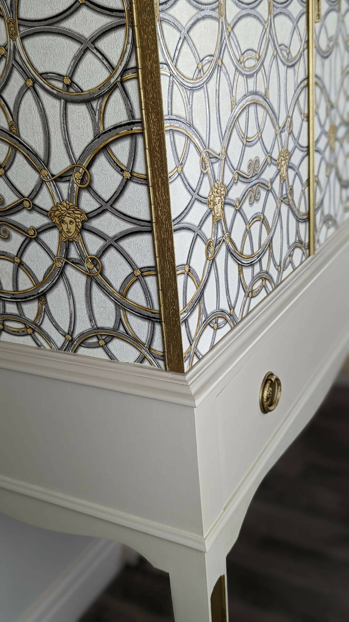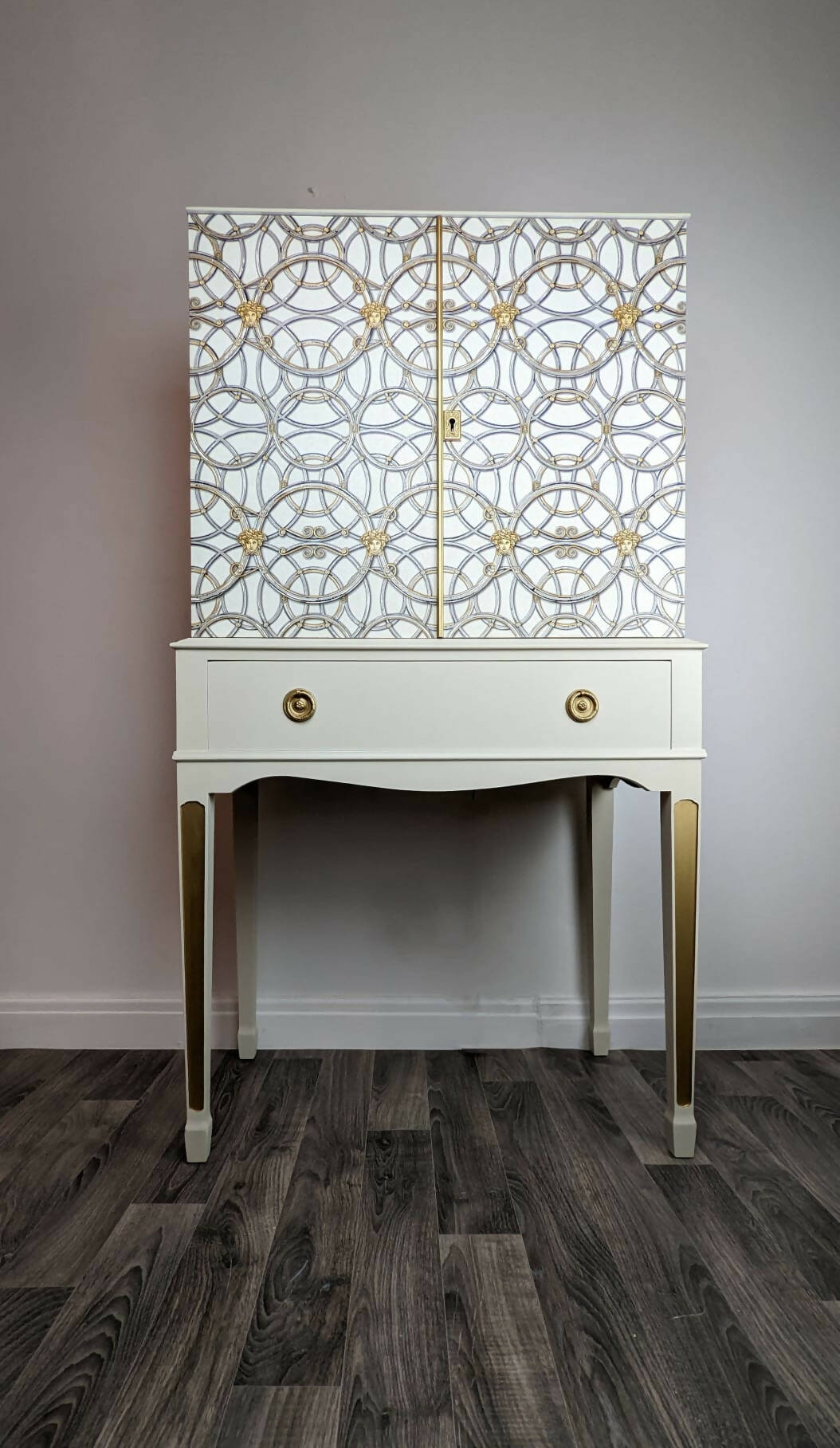 Tall Drinks Cabinet, Neutral, Vintage, Gold, Versace, Upcycled