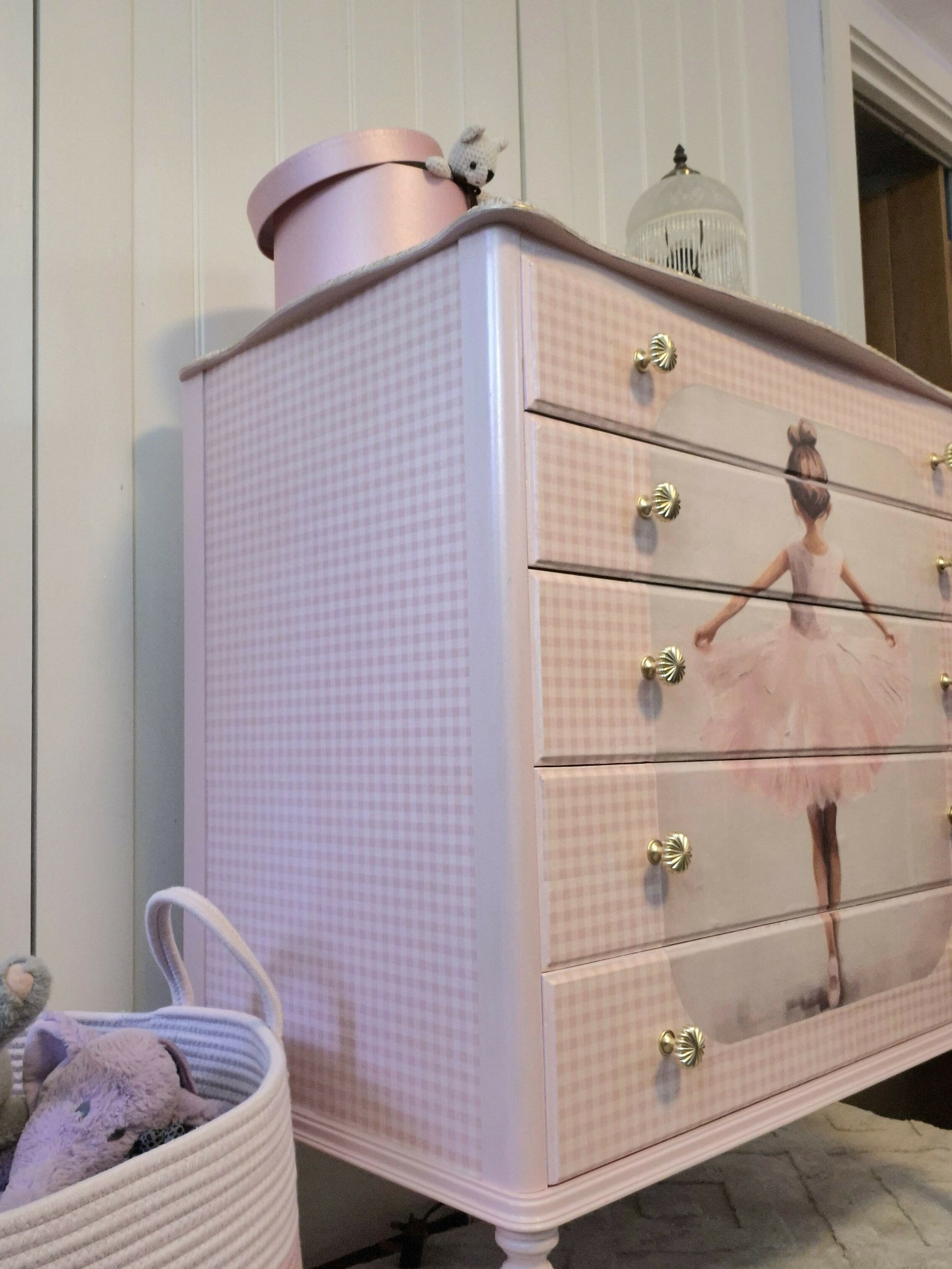 Upcycled French Chest of Drawers: Ballerina Decoupage, Blush Pink