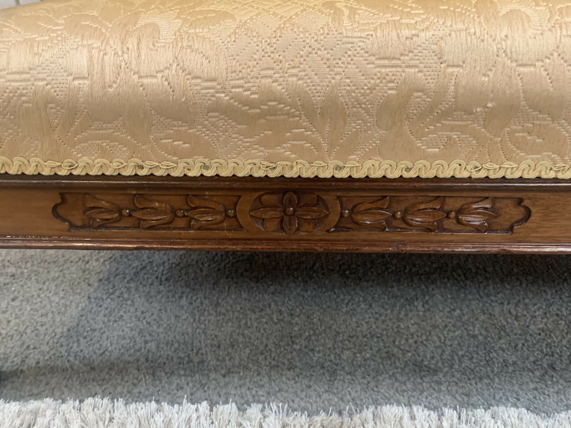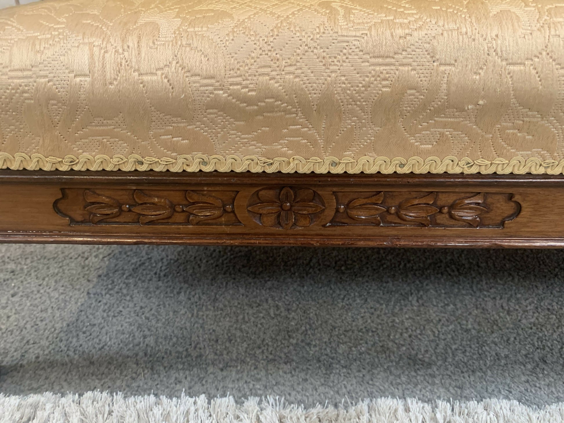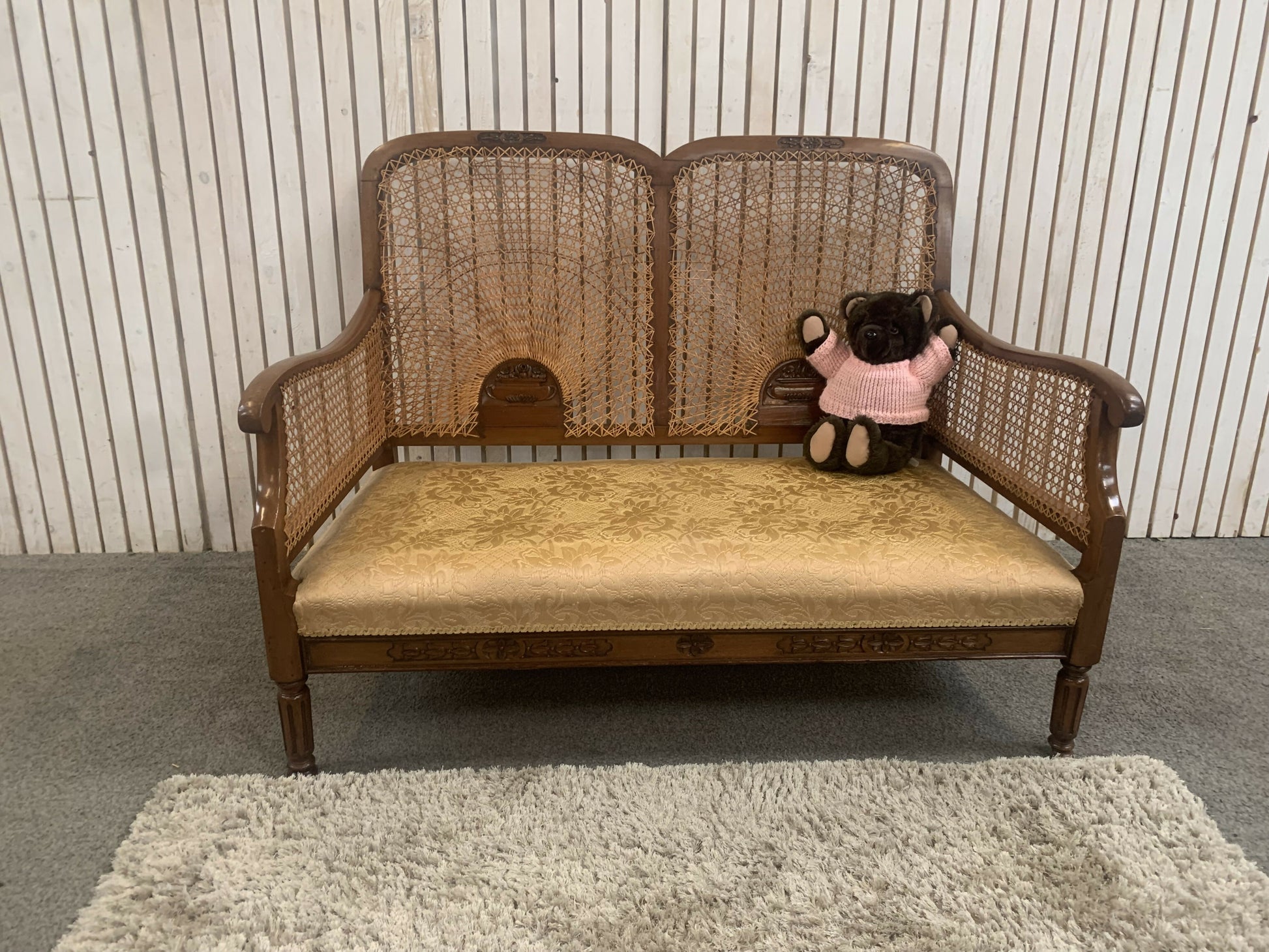 Very attractive and unique antique gold-colored cane bergère two-seater sofa.