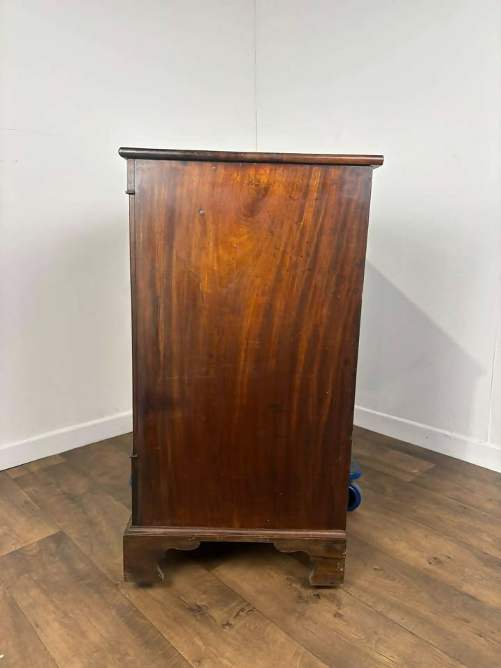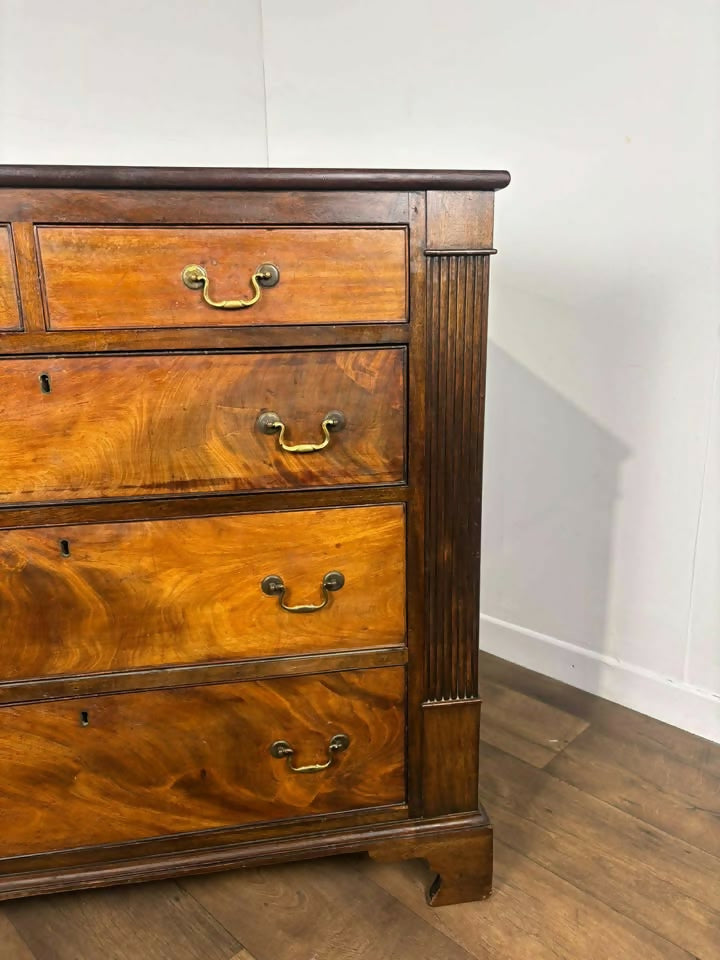It stands on solid bracket feet and is enhanced by a vertical carved detail to either side of the drawer fronts, adding depth and visual interest. Overall, the chest feels solid, sturdy, and well-made, offering excellent storage.