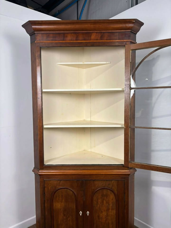 Victorian Mahogany Double Corner Cupboard With Glazed Top