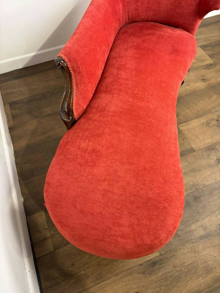 Victorian Mahogany Framed Chaise Longue with High Back and Elbow Rest