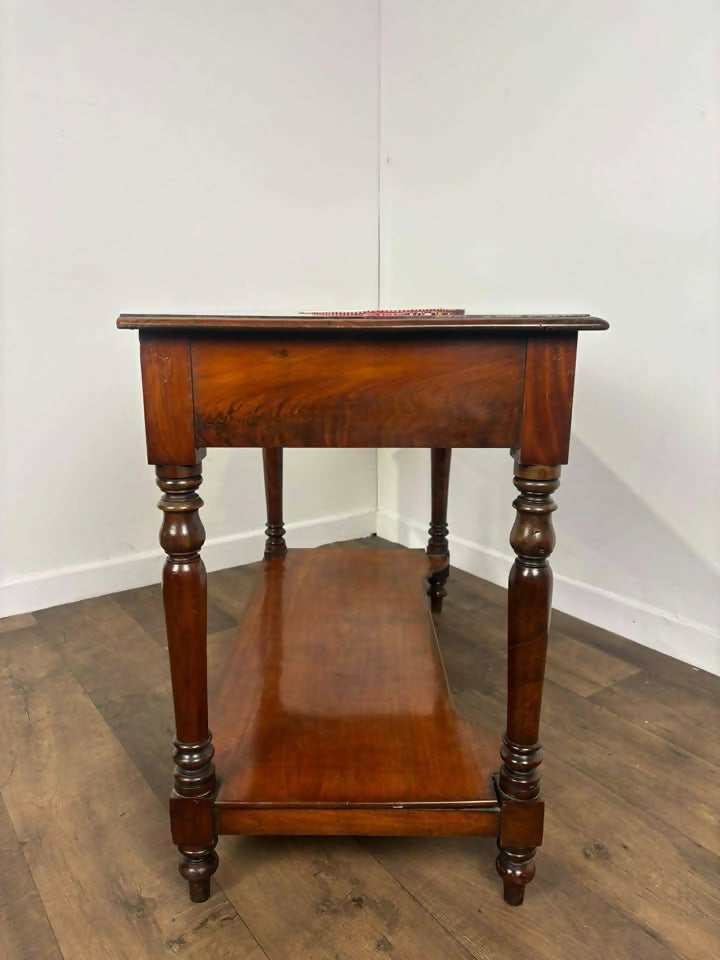 The mahogany shows a lovely depth of colour with gentle surface marks and age-related wear, entirely consistent with a genuine Victorian piece and adding to its authenticity and charm.