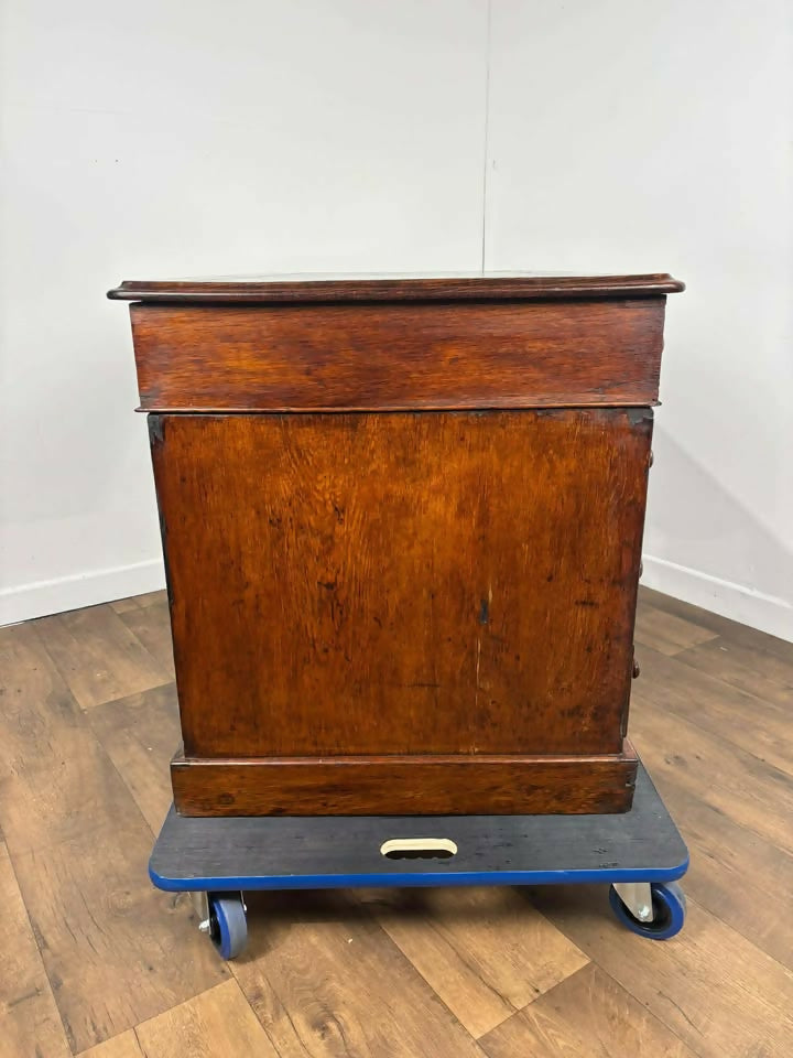 A substantial and characterful Victorian twin-pedestal desk, crafted in solid oak and retaining its original black leather writing surface. A proper, weighty piece with excellent proportions and strong presence — ideal for a study, library, or statement home office.