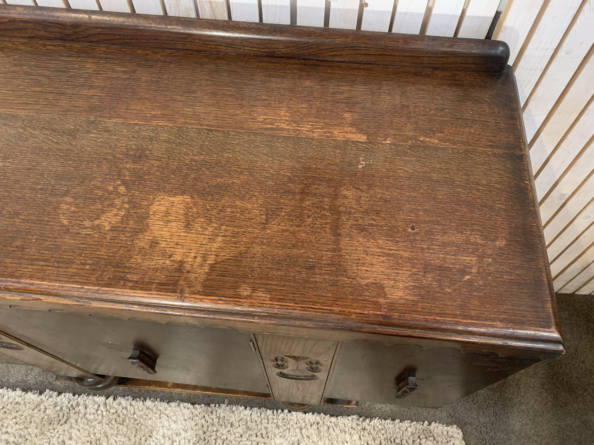 Vintage Art Deco Carved Wood Cabinet Sideboard 3 Doors 2 Drawers
