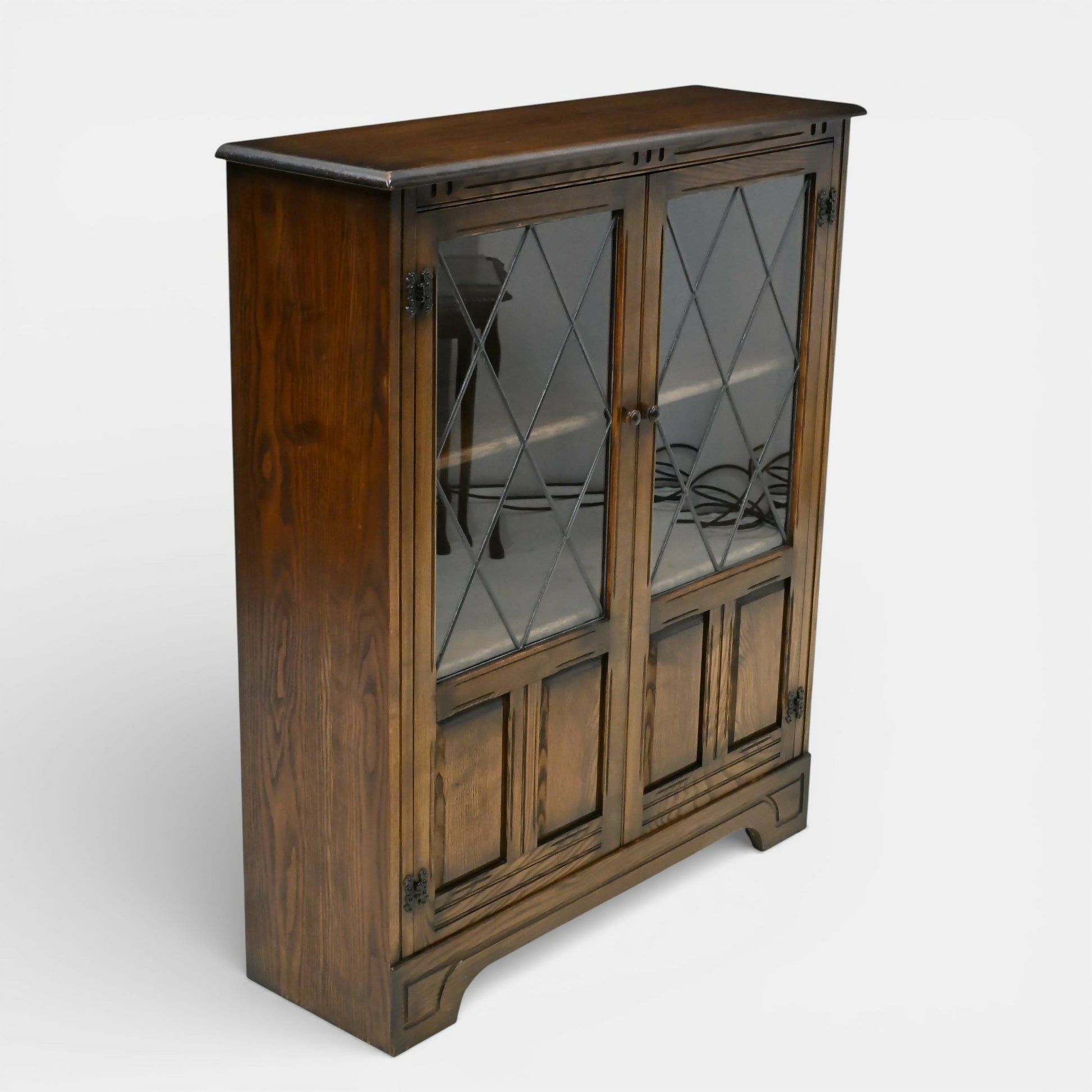 Vintage Display Bookcase With 2 Shelves Leaded Glass Doors FREE UK Delivery*. SBR11047/1410E