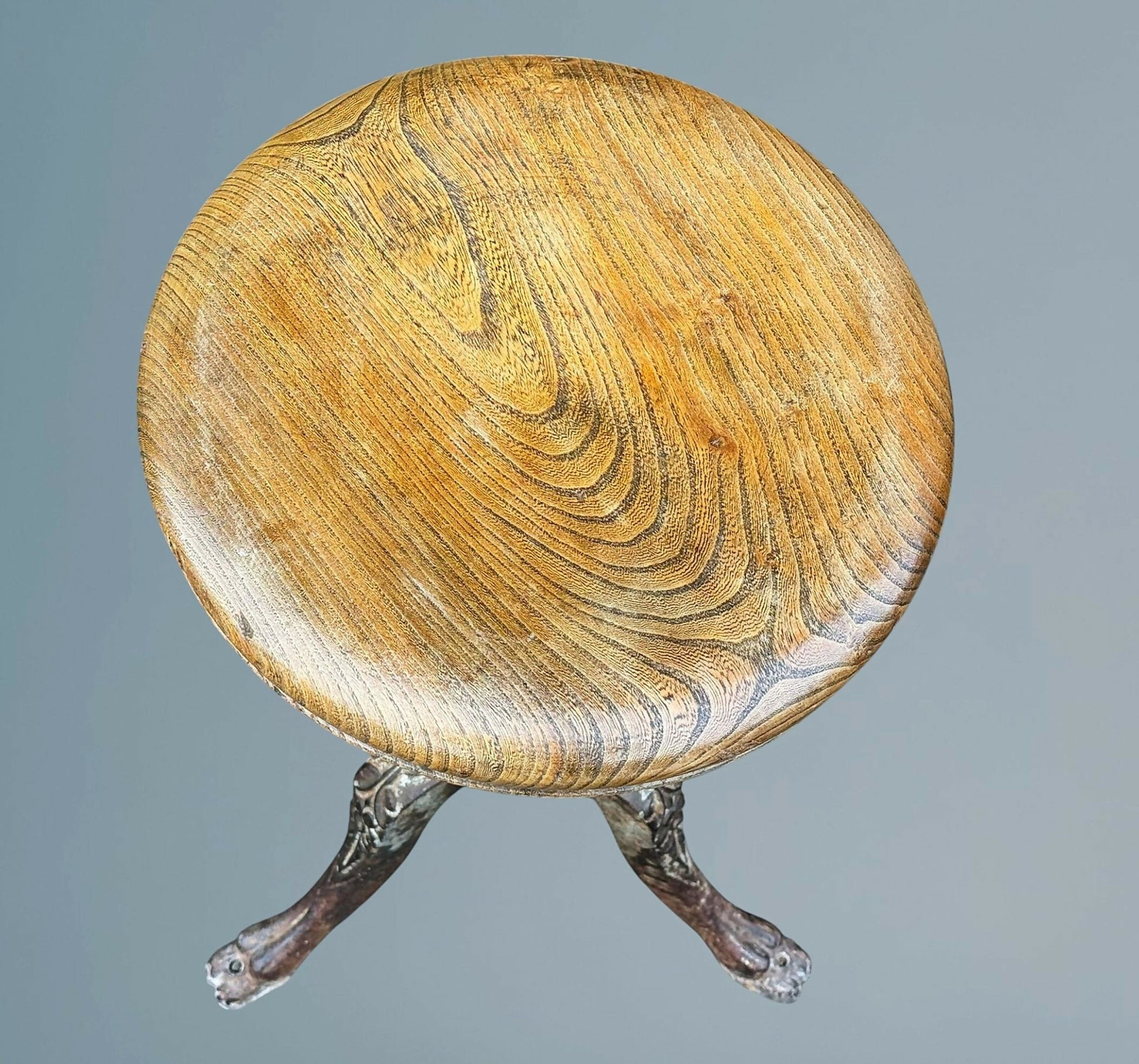 Vintage Industrial Antique Cast Iron and Elm Stool