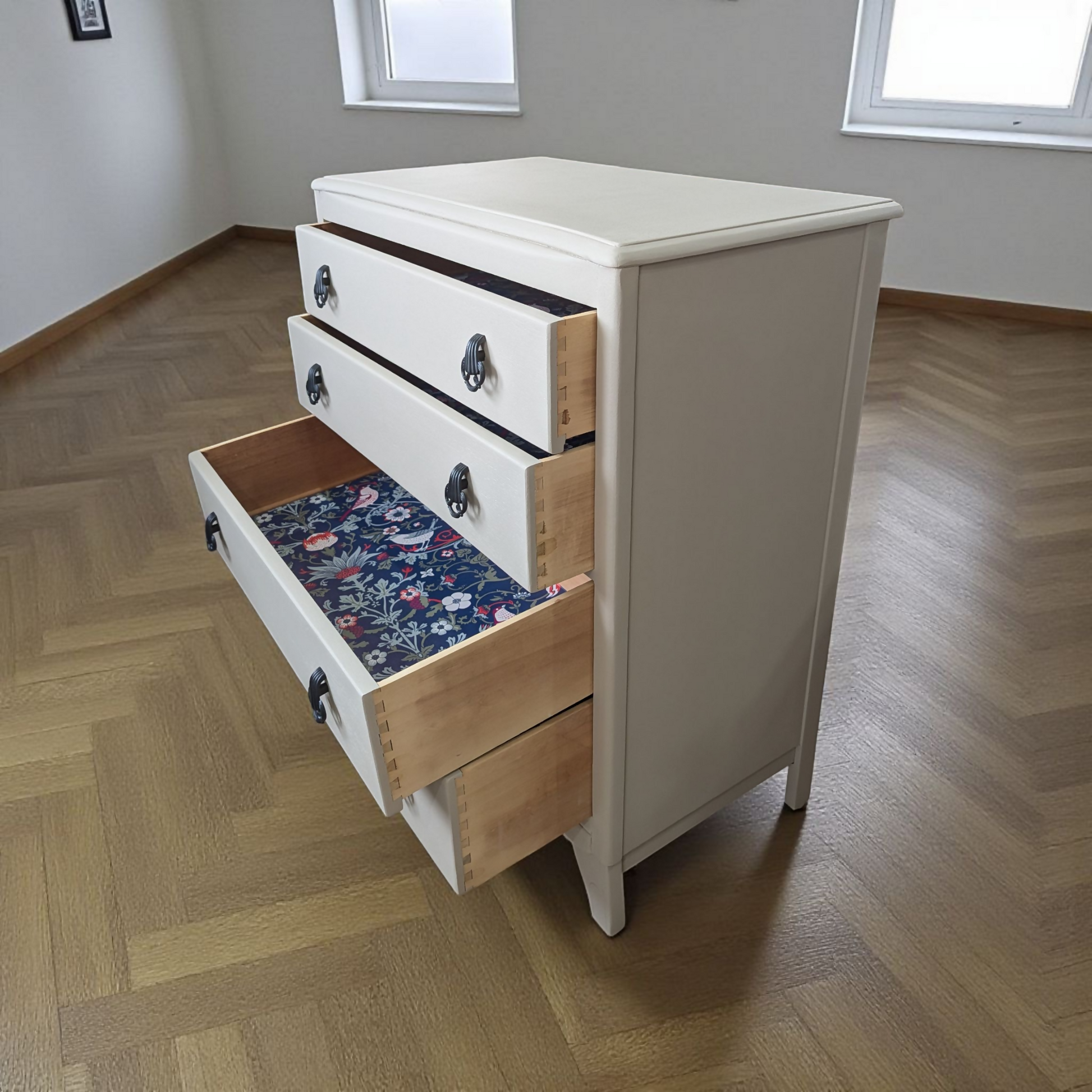 Vintage mid century chest of drawers, Lebus neutral taupe painted drawers