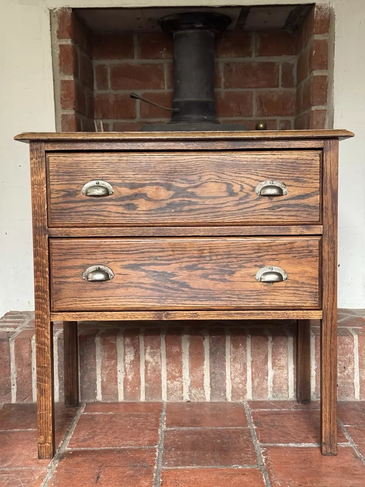 Vintage Oak Bedside Table Chest of Drawers Lowboy