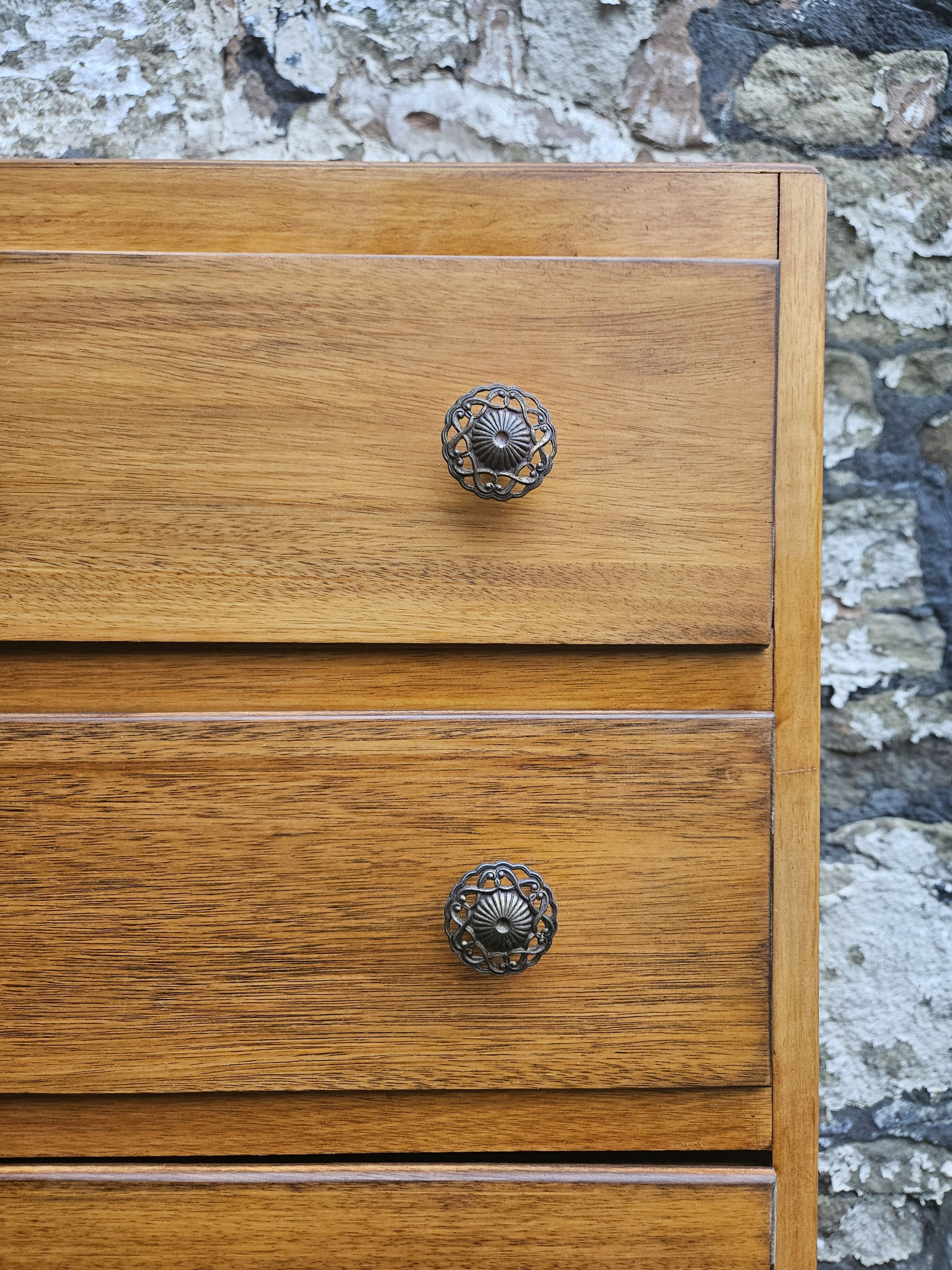 Vintage Oak Tallboy Chest of Drawers: Antique Cabinet with Detailing Five Drawer