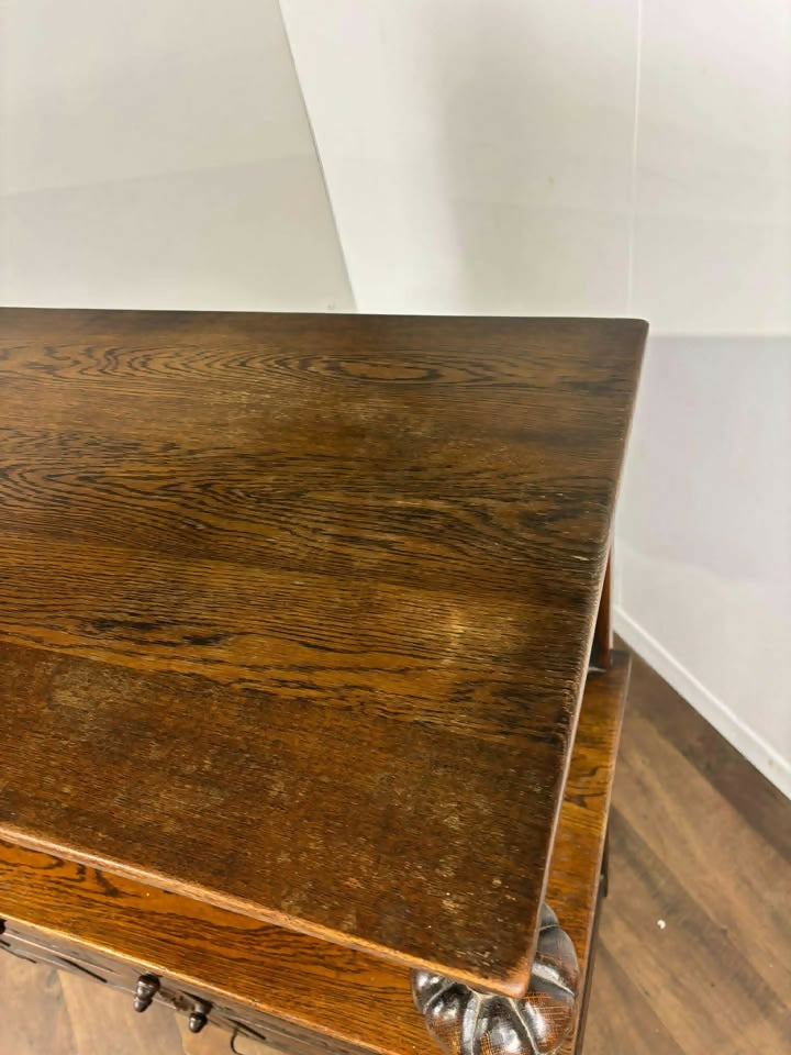 The rich dark oak finish and profuse carving make this a welcoming, decorative addition to a hallway, dining room, or living space—perfect for styling with pottery, books, or candles to create a cosy, historic atmosphere.