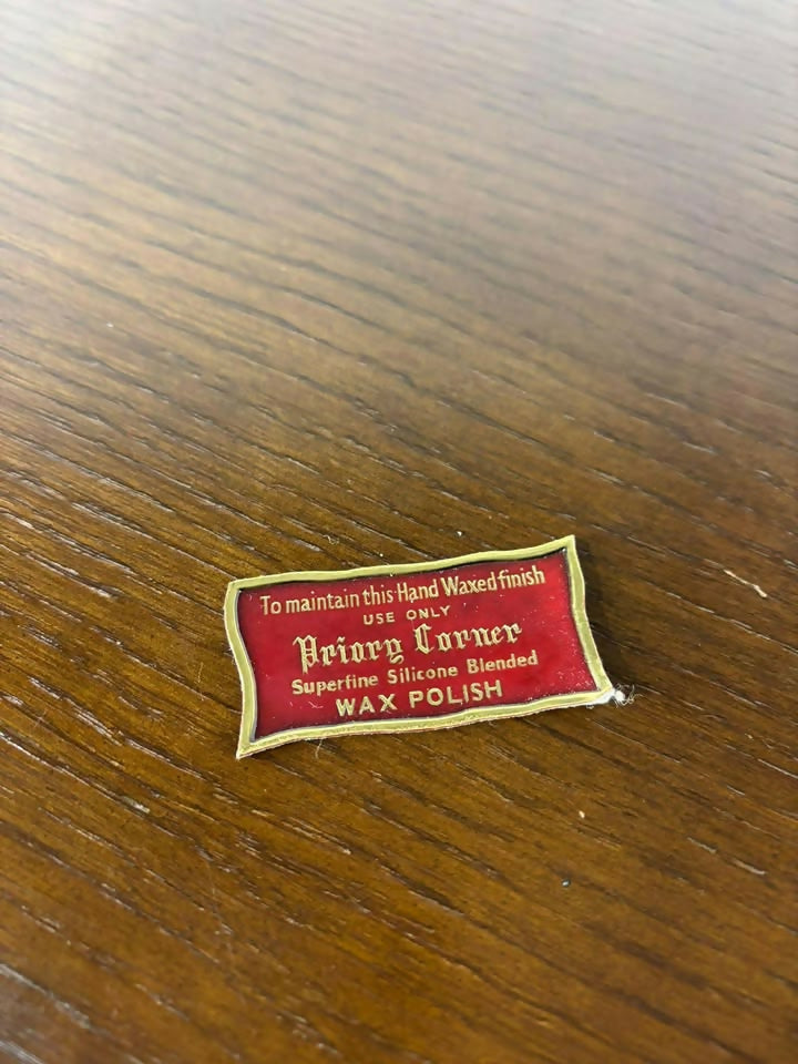 A well-made vintage Priory oak cocktail cabinet, retaining its original Priory label, now loose but present inside the cabinet. The piece is well proportioned and of solid construction, with a warm, even tone throughout.