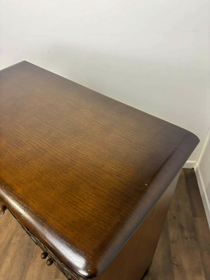 The top shows only light general wear, with small marks consistent with use, while the sides present cleanly. Both the upper and lower cupboards retain their keys.