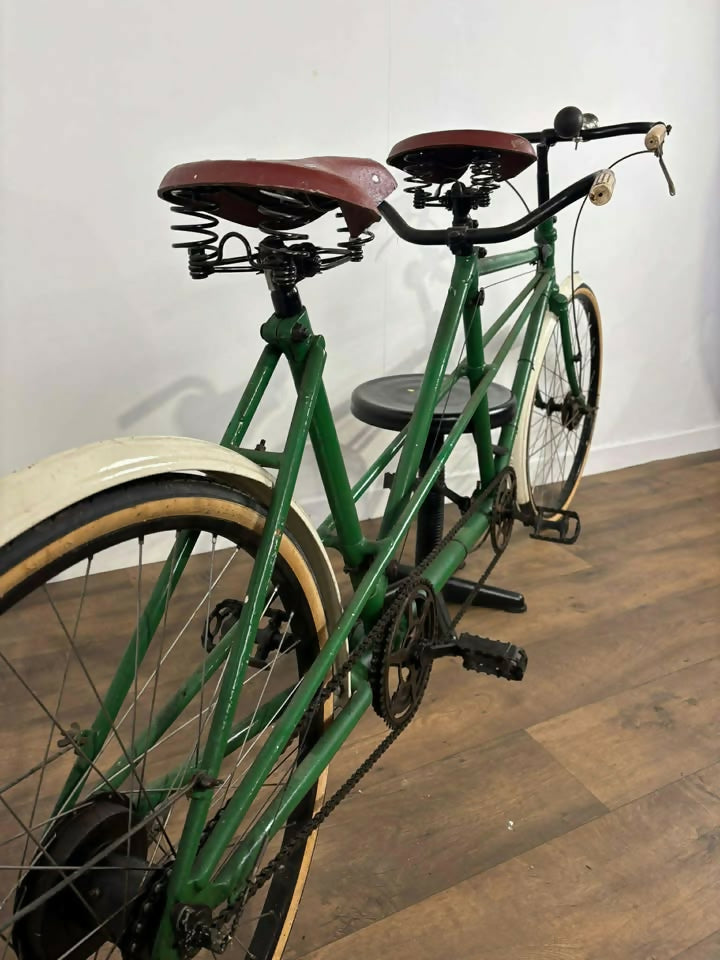 A charming vintage tandem bicycle, sympathetically restored and presented in very pleasing order. Finished in a rich green with contrasting details, the bike has a strong visual presence and plenty of character.