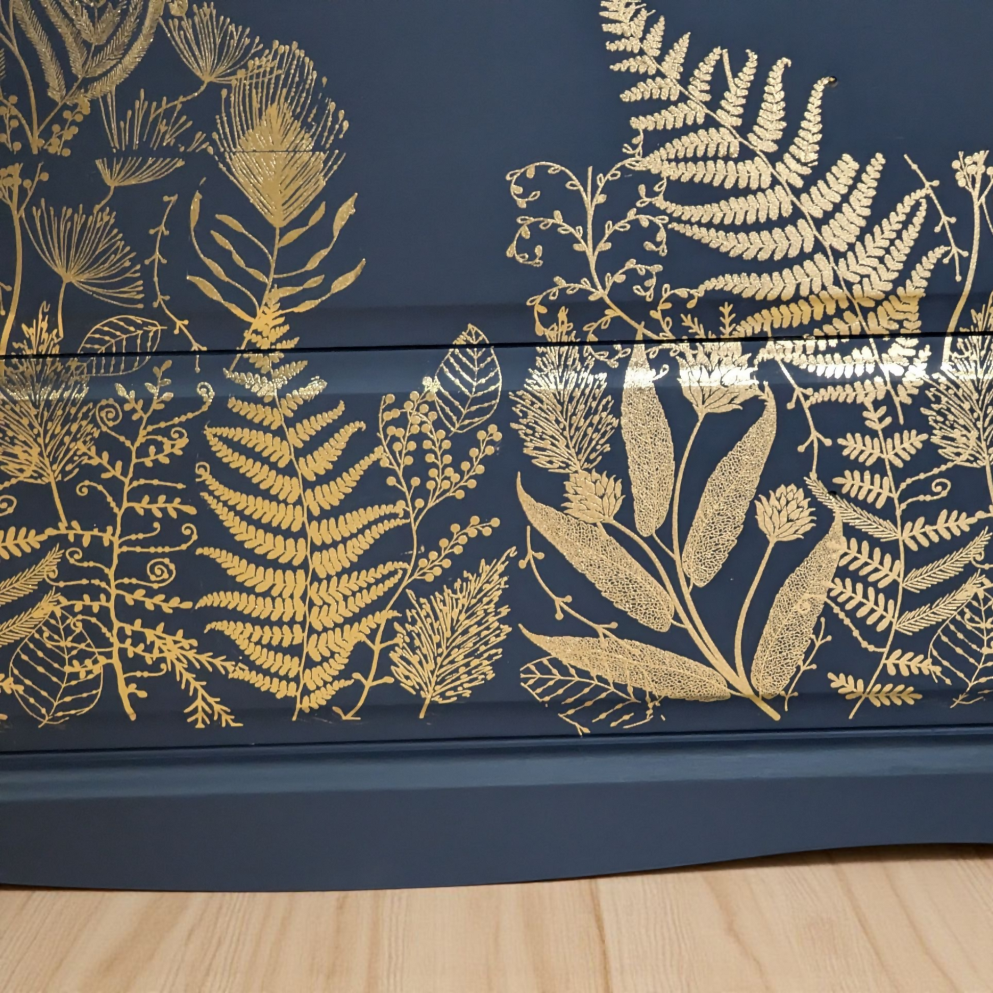 A beautiful gold foil foliage design was added to make this piece a show stopper in your home.
