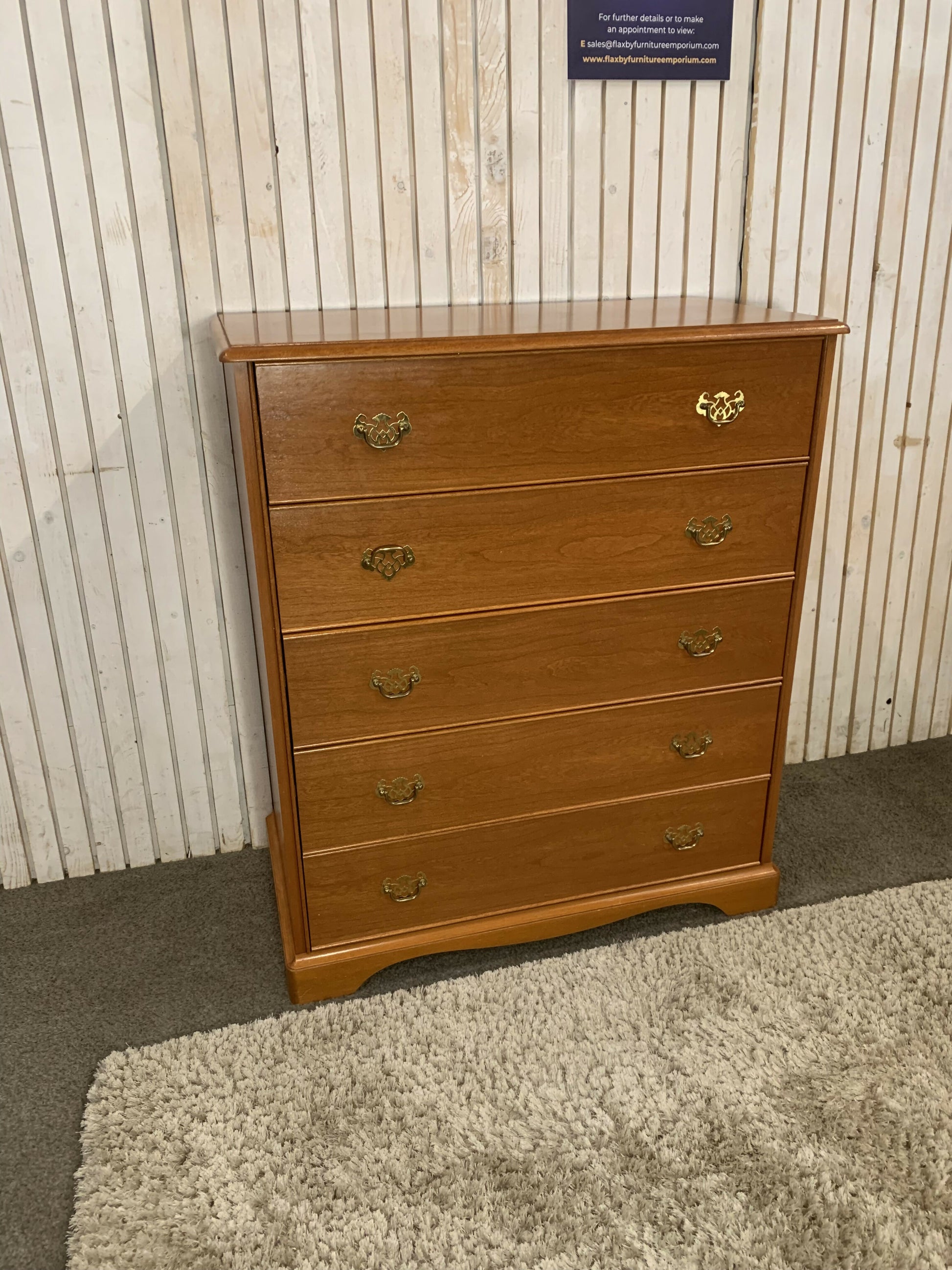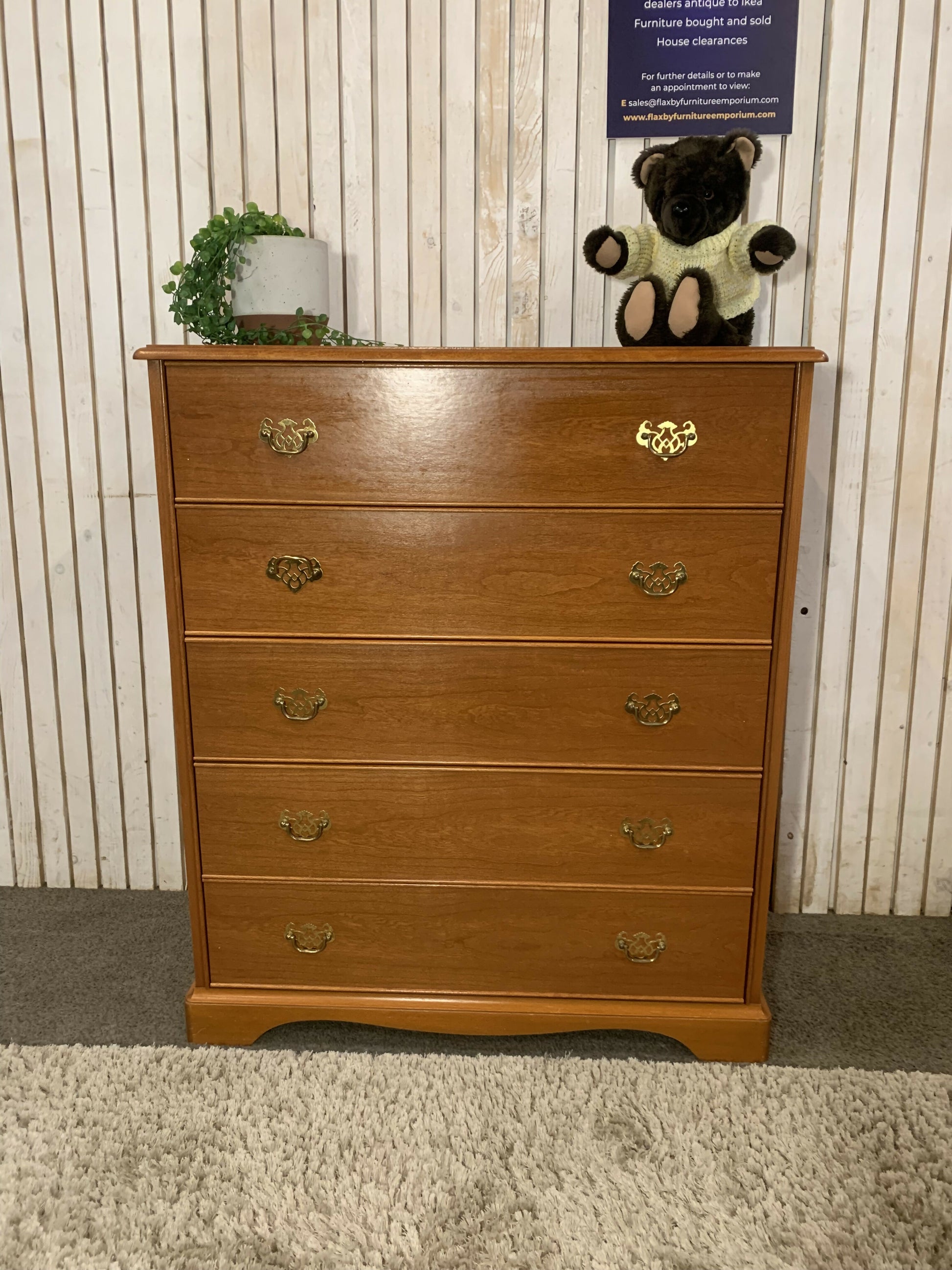 Vintage Stag Tallboy Chest – 5 Drawer Solid Wood Bedroom Storage, Retro Mid-Century Style