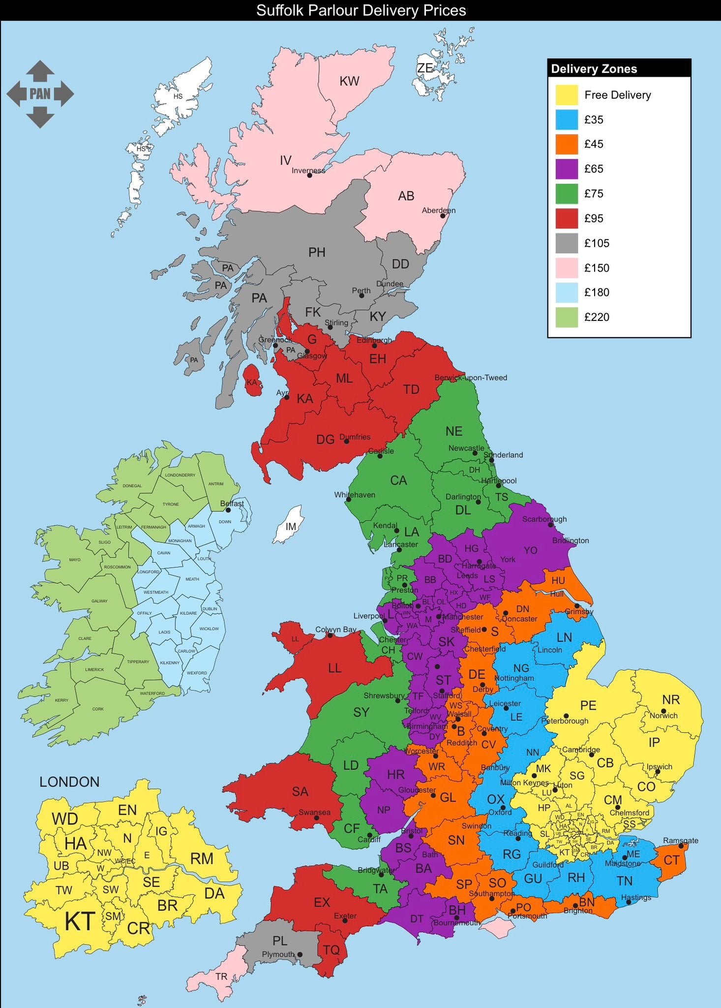 We deliver throughout mainland uk. Please see the last photo for a postcode map which gives details of our Free Delivery Zone and also delivery charges for the rest of the UK and Ireland. Delivery charge is payable in cash to the driver on delivery, a receipt/ invoice can be provided if requested.