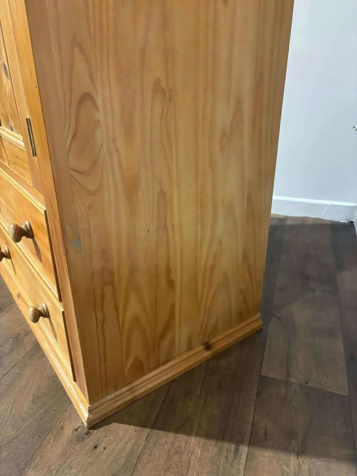 Waxed Solid Pine Two Door Wardrobe / Hall Cupboard
