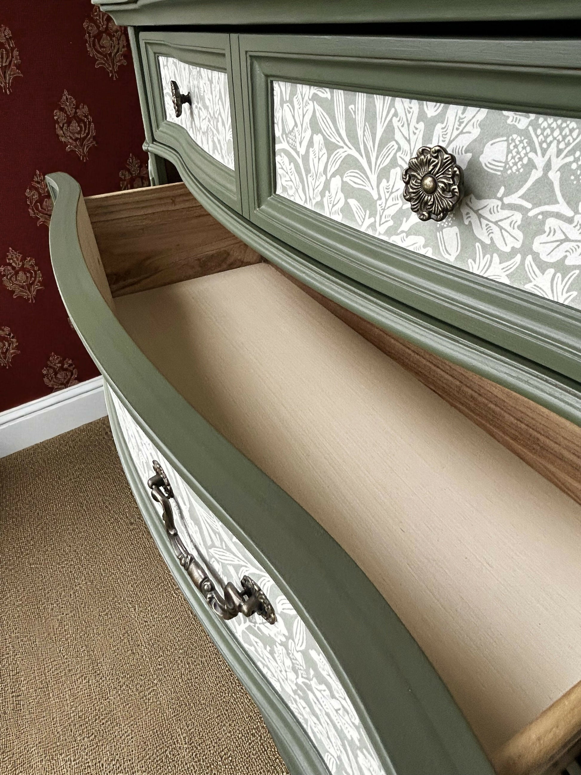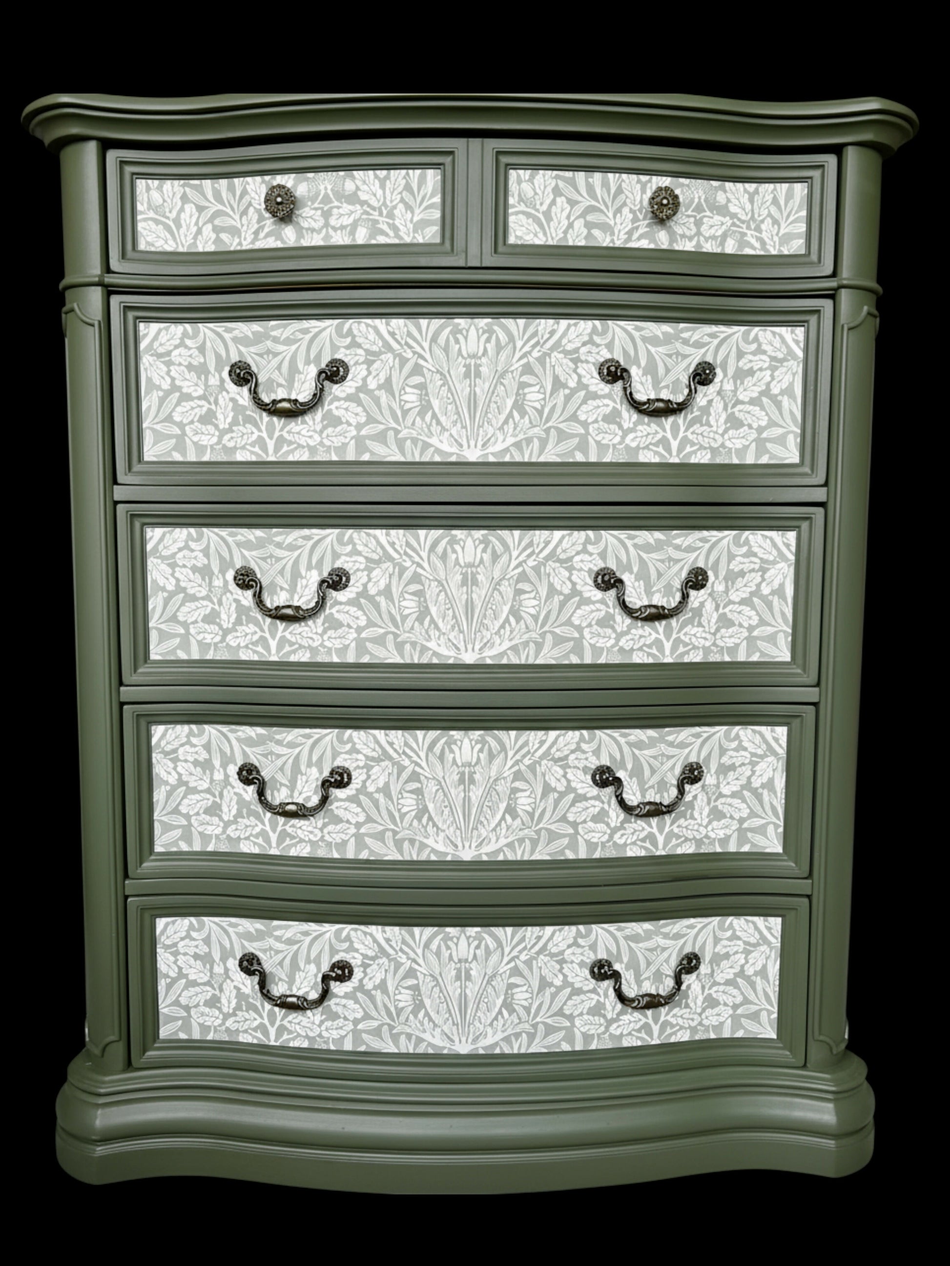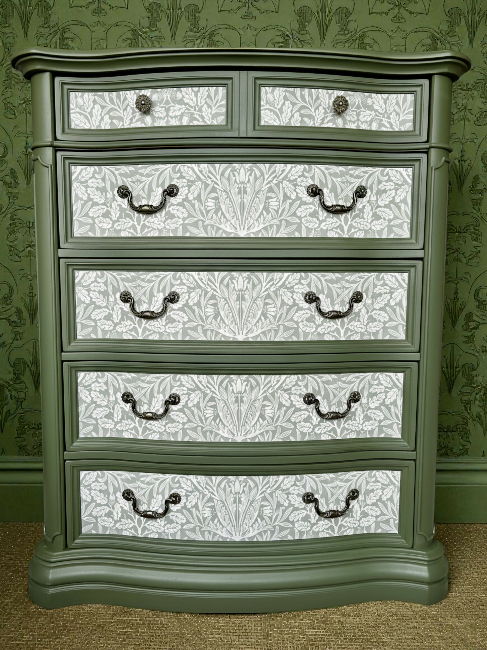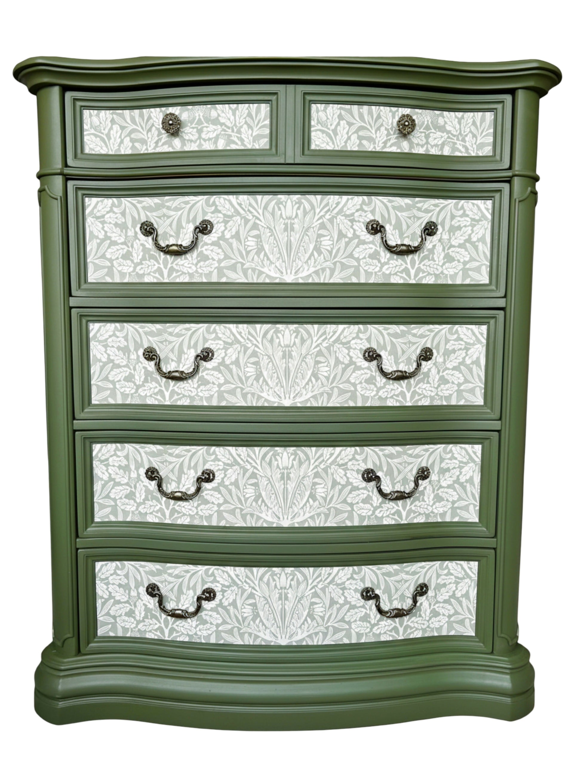 William Morris Style Large chest of drawers. Wood. Handpainted, with decoupage.