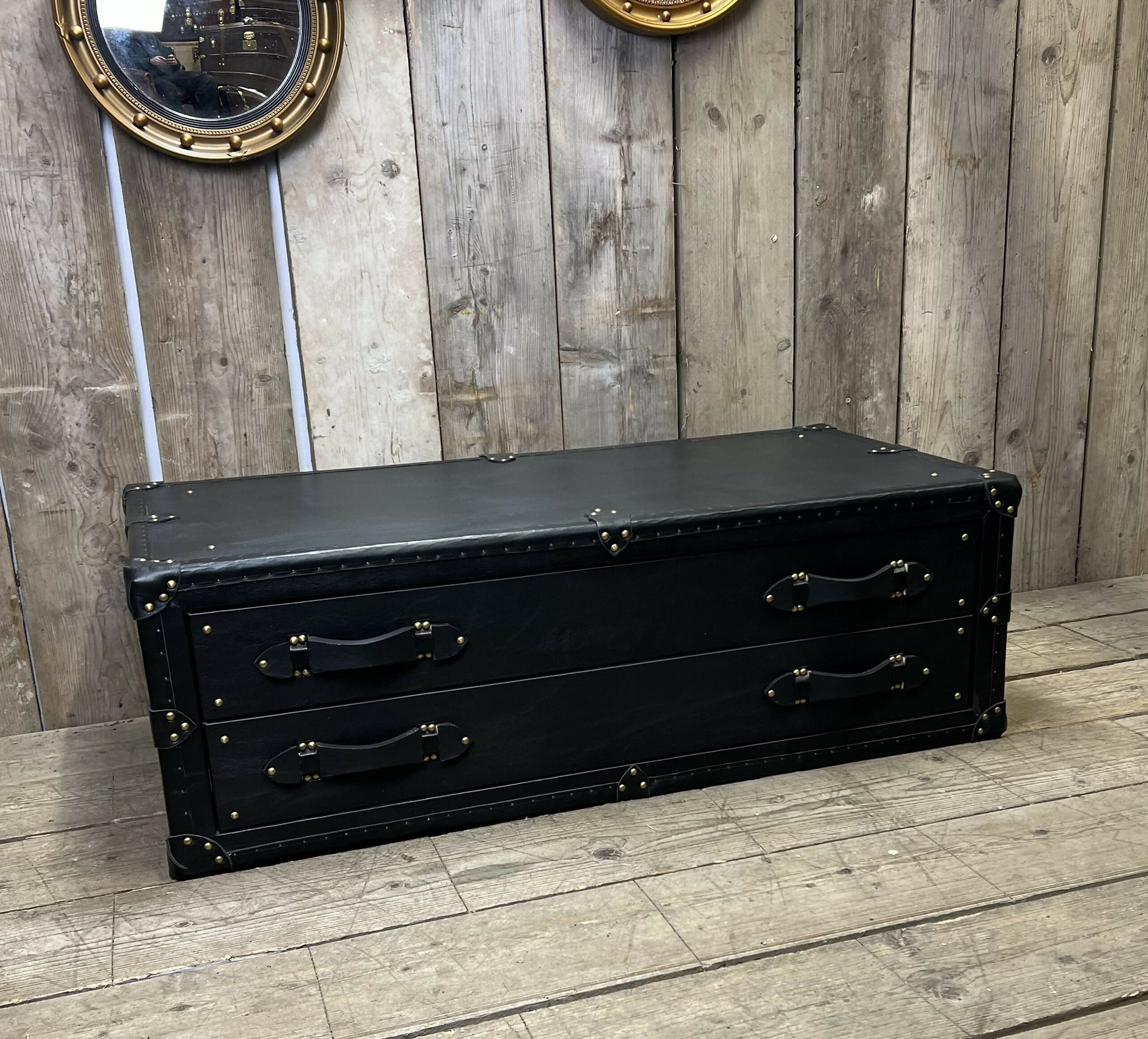 XL Black Leather 2 Drawer Coffee Table, End Table