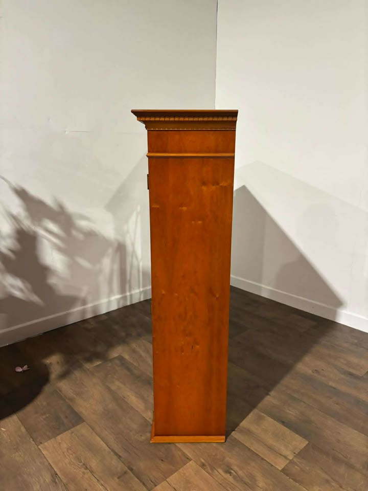 This piece comes complete with its original key and displays the refined craftsmanship typical of quality yew furniture. The cabinet appears to have once formed the top section of a larger piece but stands independently as a striking display feature.